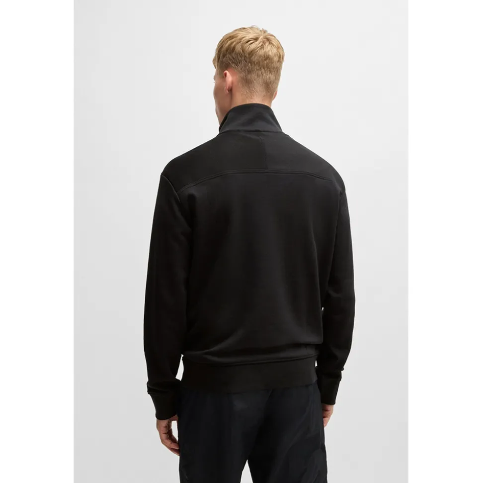 The Boss Ze Corduroy Quarter Zip is a relaxed-fit sweatshirt crafted from pure-cotton fleece for exceptional comfort. Featuring a quarter-zip neck with corduroy detail and long sleeves, it is finished with a subtle Boss logo detail at the chest. This versatile layer pairs effortlessly with jeans, a white tee, and trainers for a polished yet casual look.