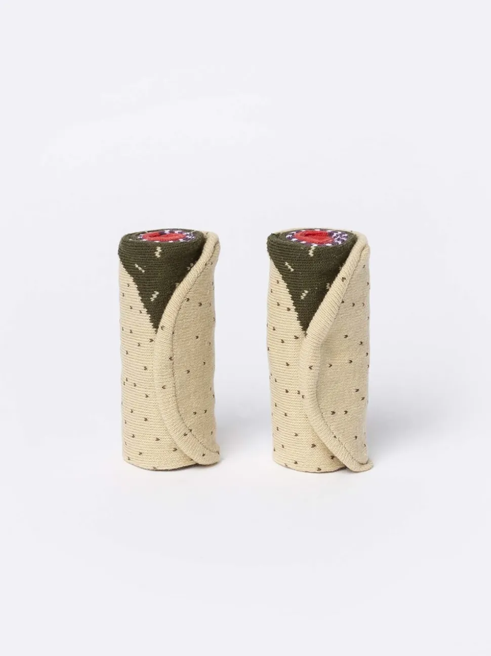 Turn up the heat with the EAT MY SOCKS Spicy Burrito Socks Gift Box! Designed to resemble a mouthwatering burrito, these cozy socks are perfect for keeping your feet warm and your style sizzling. Whether you’re a spice lover or just enjoy a bold twist on everyday essentials, these socks are sure to fire up your wardrobe. Treat yourself or gift them to someone who loves their fashion hot and fun!