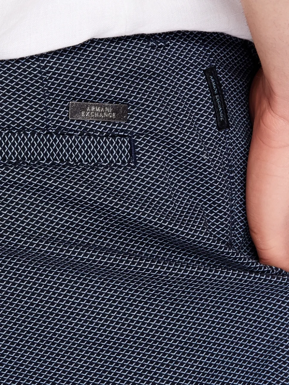 Keep it stylish and comfortable with the AX Armani Logo Print Shorts. Crafted from stretch cotton with a tailored fit, they’re perfect for everyday wear. Featuring an all-over print, handy front and back pockets, and a signature AX logo patch on the back, these shorts add a cool, laid-back vibe to any outfit.