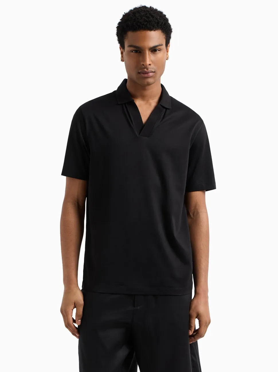 The AX Armani Mercerized Cotton Open Neck Polo is a sleek and modern take on a classic style. Crafted from 100% mercerized cotton, this regular-fit polo offers a soft, smooth feel with a subtle sheen. Featuring an open-neck design and short sleeves, it delivers effortless sophistication and comfort,perfect for both casual and refined looks.