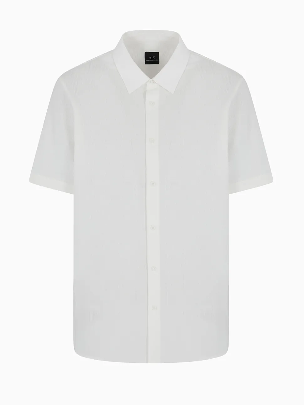 The AX Armani Seersucker Short Sleeve Shirt combines effortless style with lightweight comfort. Crafted from 100% cotton in a regular fit, it features a breathable seersucker texture and the signature AX logo embroidered on the chest. A perfect choice for warm-weather sophistication.