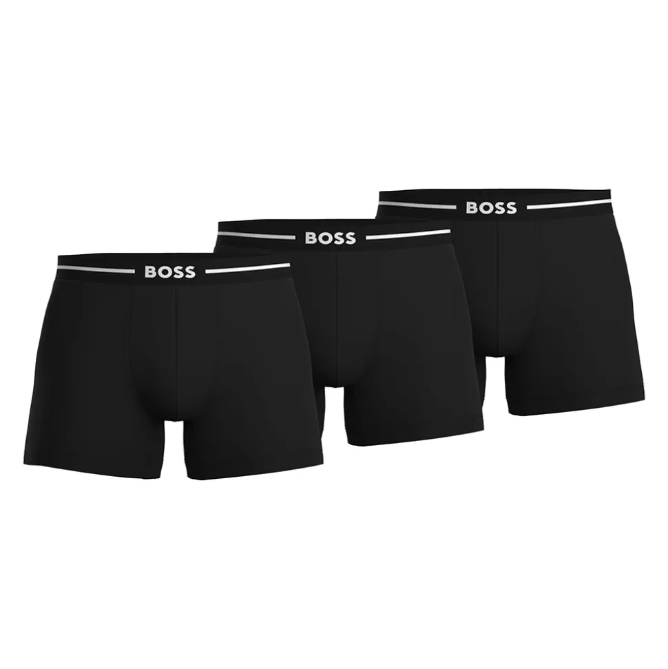 Update your everyday underwear collection with these soft, dynamic stretch cotton boxer trunks topped with a smart branded waistband. A three-pack of straight-cut trunks by BOSS, crafted with 95% organic cotton two pairs in black and one in white.