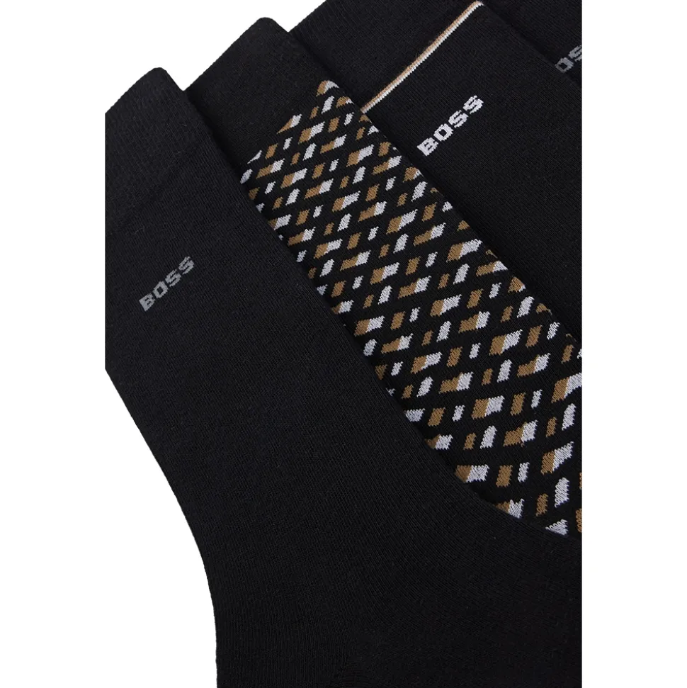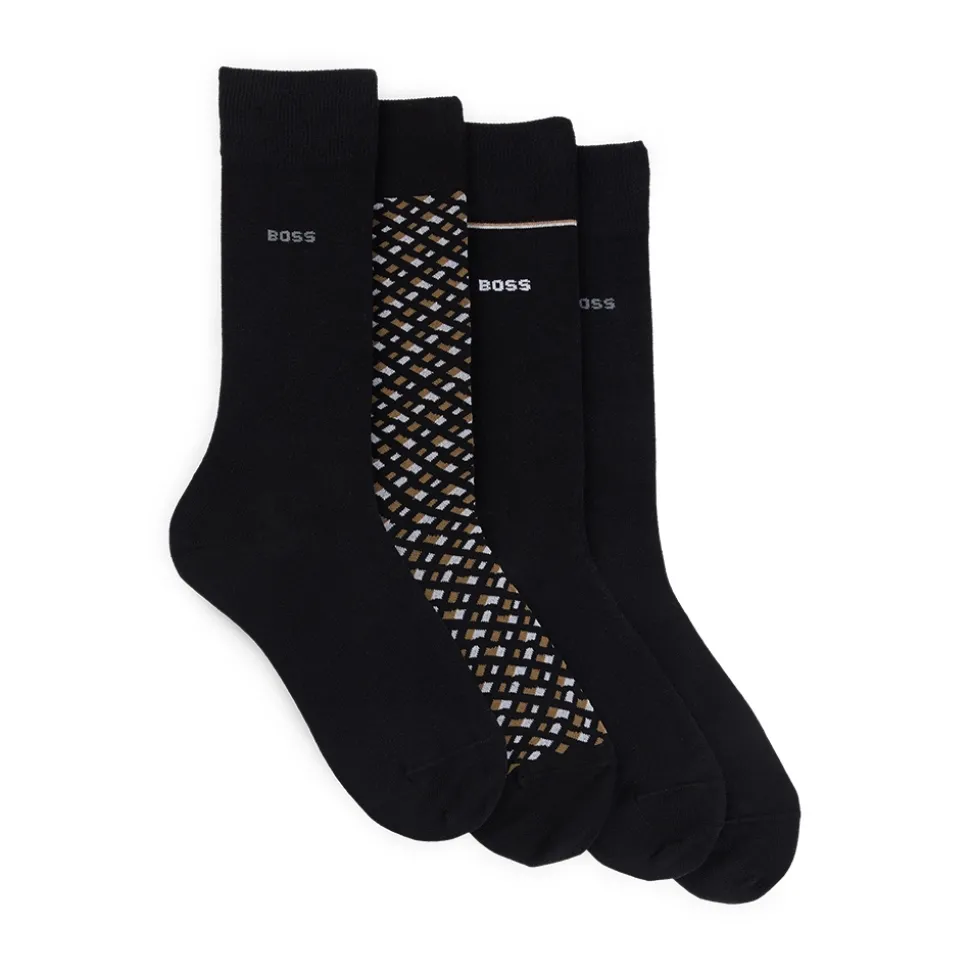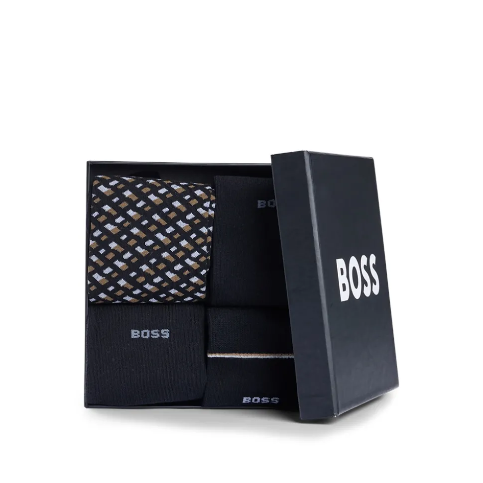 The Boss 4 Pack Monogram Gift Set is the perfect present for those who appreciate style and comfort. This gift set includes four pairs of regular-length socks, each featuring elegant monogramming and subtle logo trim. Crafted from a soft stretch-cotton blend, these socks provide a comfortable fit for all-day wear. Ideal for elevating everyday outfits or adding a touch of luxury to any look, this set makes a thoughtful gift for friends, family, or yourself.
