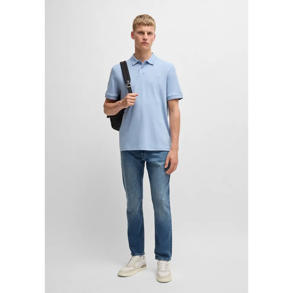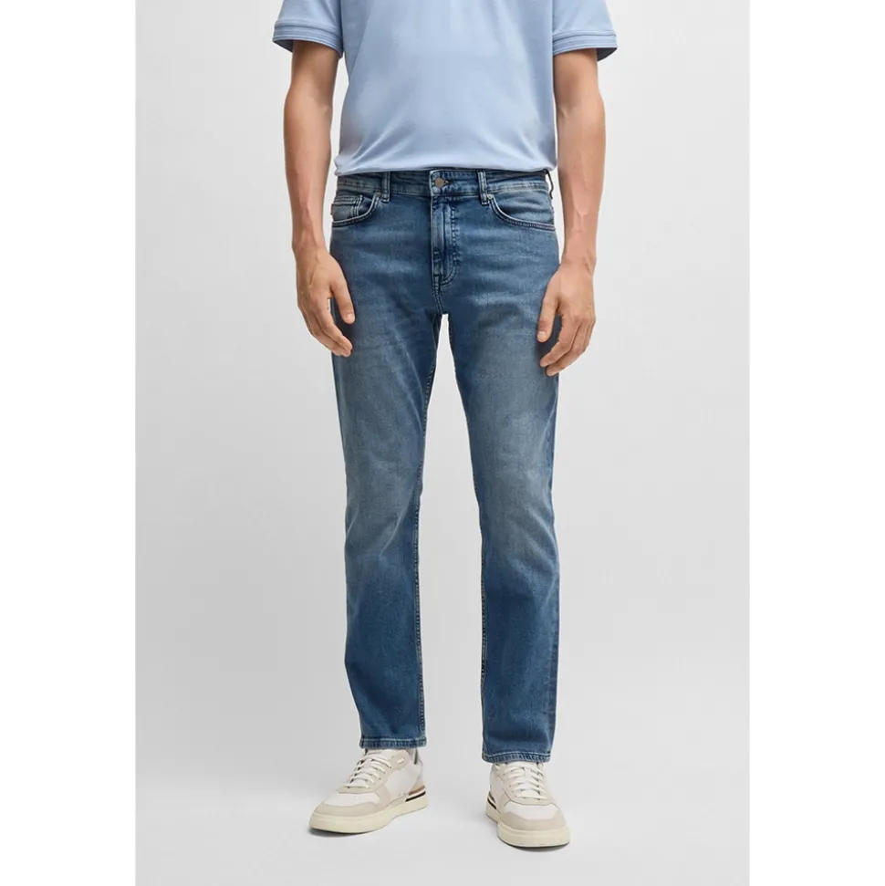 The Boss Delaware Jeans offer a sleek, slim-fit design crafted from comfortable blue stretch denim. With a regular rise and a convenient button and zip closure, these jeans are both stylish and practical. They feature two front and two back pockets, providing ample storage. The Boss logo patch on the back adds a signature touch of elegance. Perfect for both casual and smart-casual looks, these jeans can be effortlessly paired with anything from a relaxed T-shirt to a crisp dress shirt, making them a versatile addition to any wardrobe.
