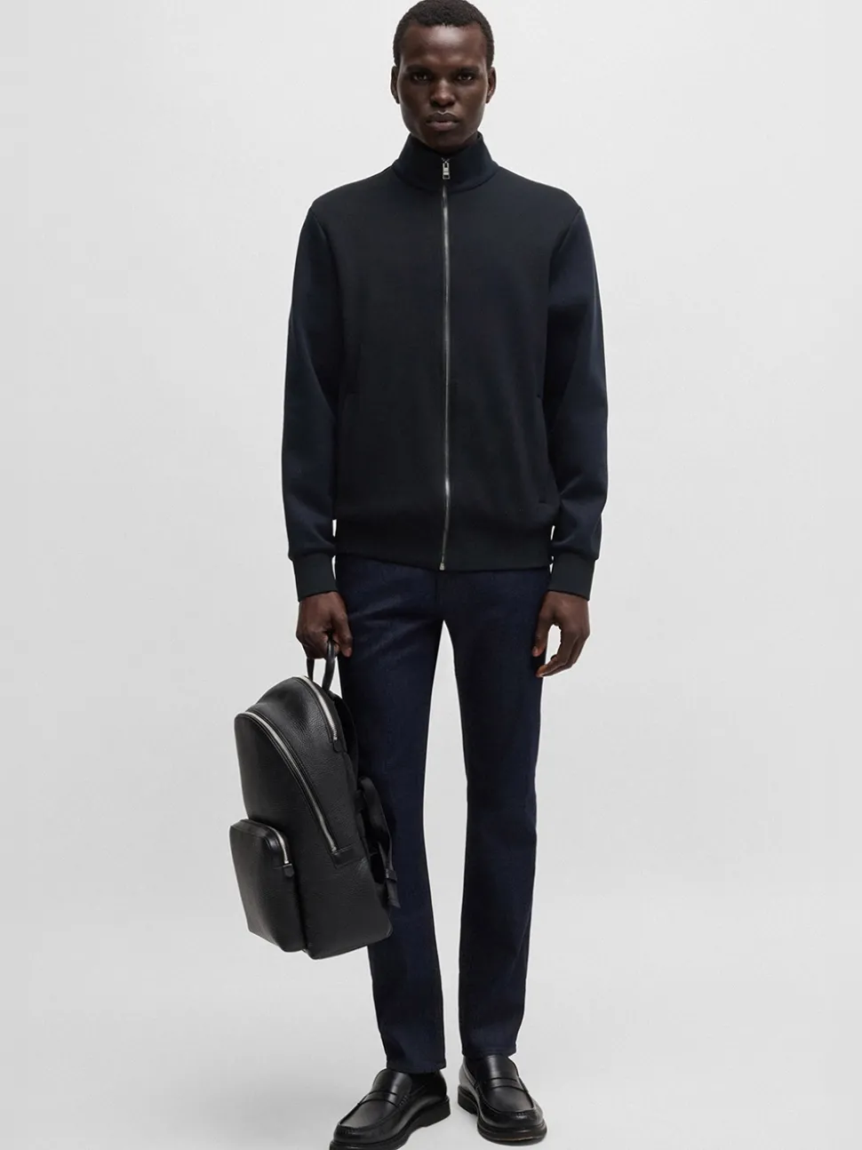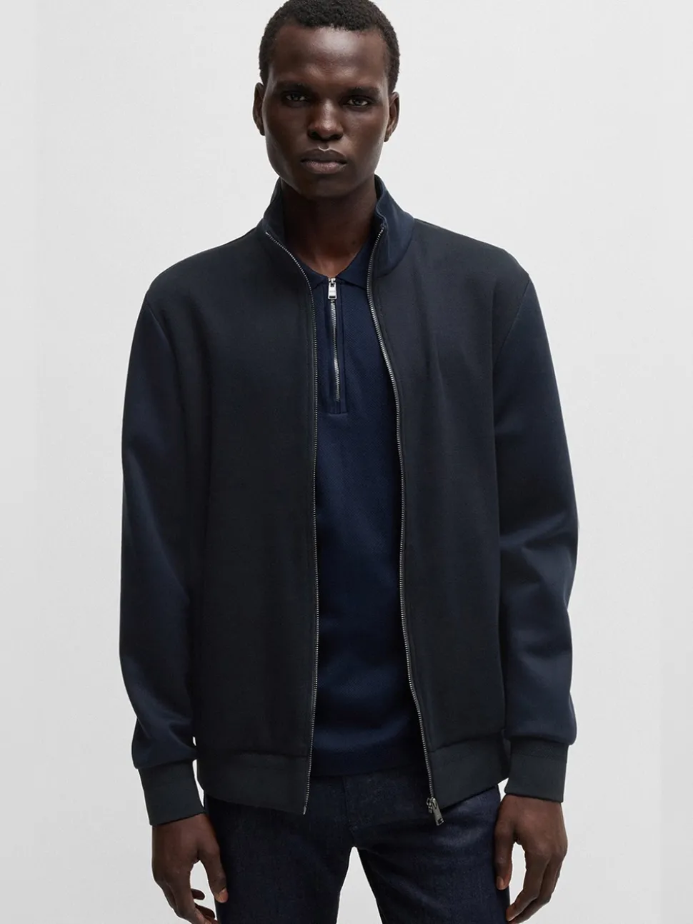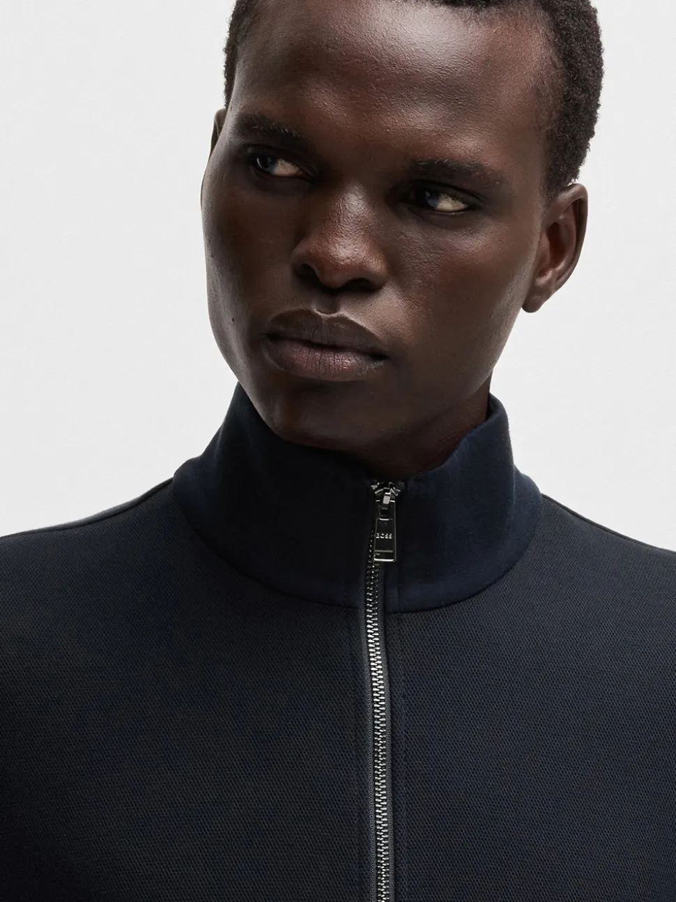 The Boss H-Shepherd Full Zip Sweat is a versatile wardrobe essential featuring a regular fit, stand collar, and full-zip closure for a sleek, modern look. Designed for both comfort and style, it boasts long sleeves, cuffed hem and cuffs, and two front pockets for added functionality. Perfect for layering, this sweatshirt is a must-have for effortless everyday wear.