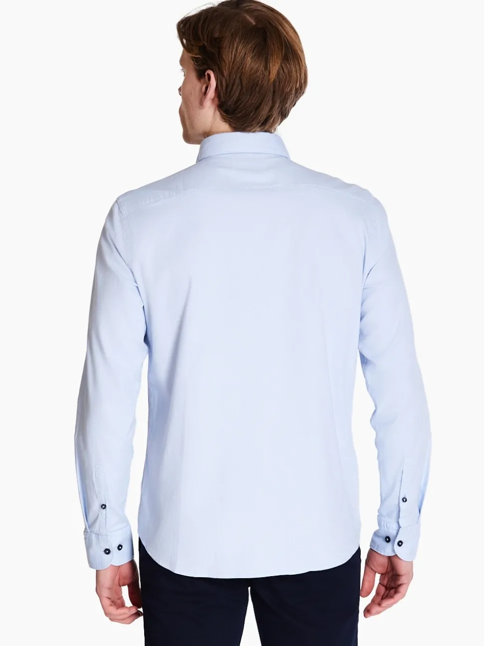 The BOSS HAL C3 223 Slim Fit Shirt is crafted from 100% cotton for a comfortable feel, featuring a textured look and long sleeves. With contrast inner collar detailing and contrast buttons, this shirt offers a modern, stylish twist on a classic design. Pair it with chinos or tailored trousers and leather shoes for a sharp, sophisticated look.