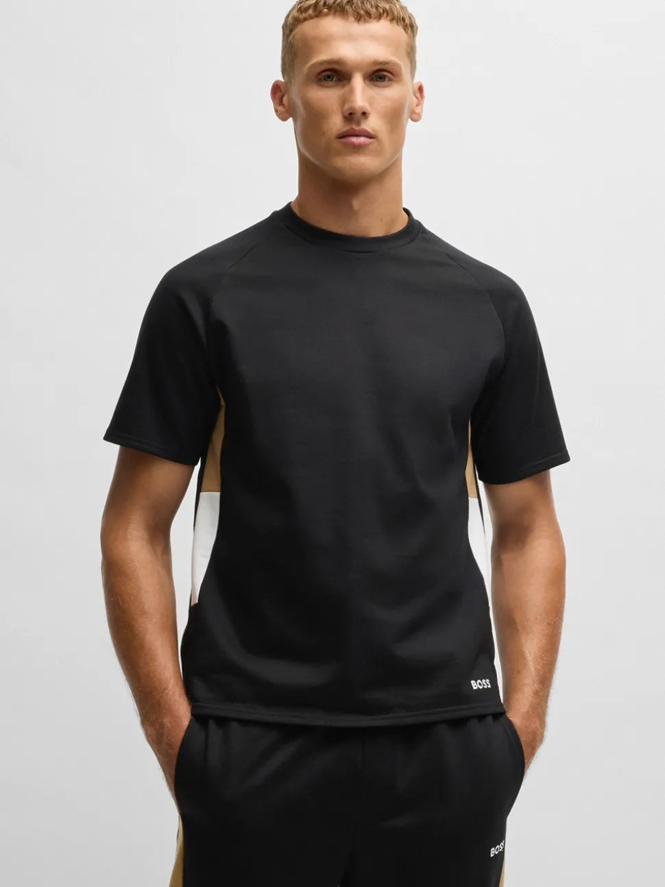 The BOSS Iconic T-Shirt offers a distinctive look with contrast-colored side panels. Designed in a comfortable regular fit, it’s crafted from soft cotton terry for a premium feel. Finished with a subtle BOSS logo on the hem, this 100% cotton tee is a stylish and versatile essential.