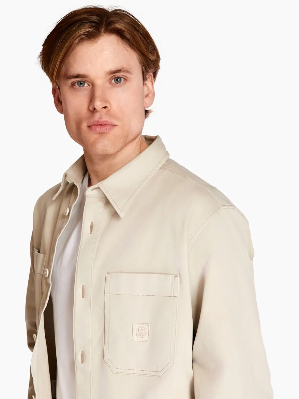 Upgrade your layering game with the BOSS Lerato Overshirt. Designed in a comfort fit, this versatile piece is crafted from 100% cotton for a soft, breathable feel. Featuring a button-up front, classic collar, and practical chest pockets with a Boss logo patch, it blends casual elegance with everyday functionality. Perfect for effortless styling.