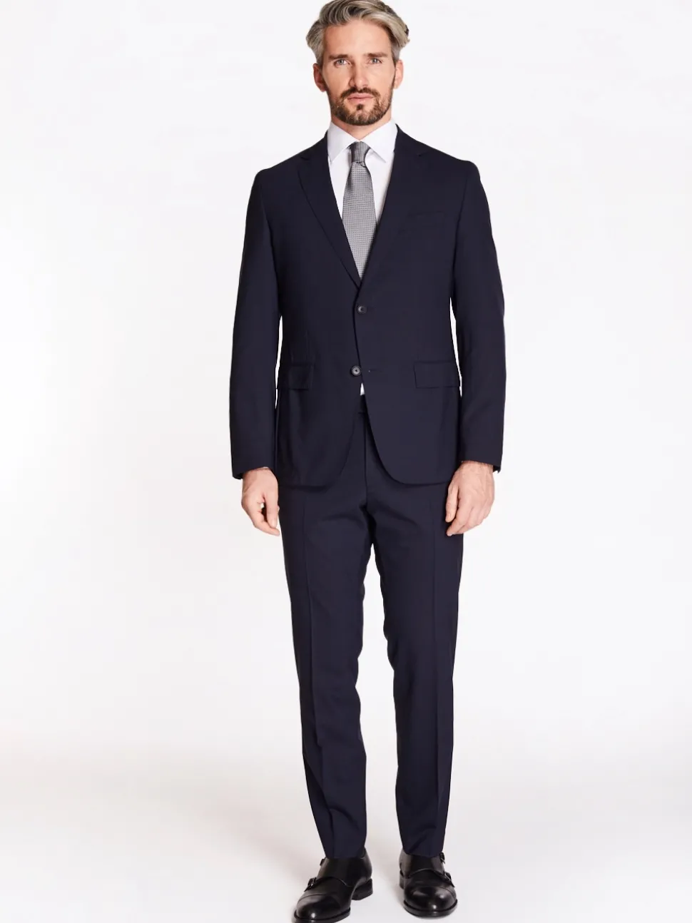 The BOSS P Huge 242 2-Piece Suit is a sleek, slim-fit suit crafted from a refined wool blend. The jacket is designed with a notch lapel, two-button closure, welt chest pocket, and front flap pockets, offering a tailored and polished silhouette. Additional details include button cuffs and side vents for ease of movement. Ideal for professional settings or formal occasions.