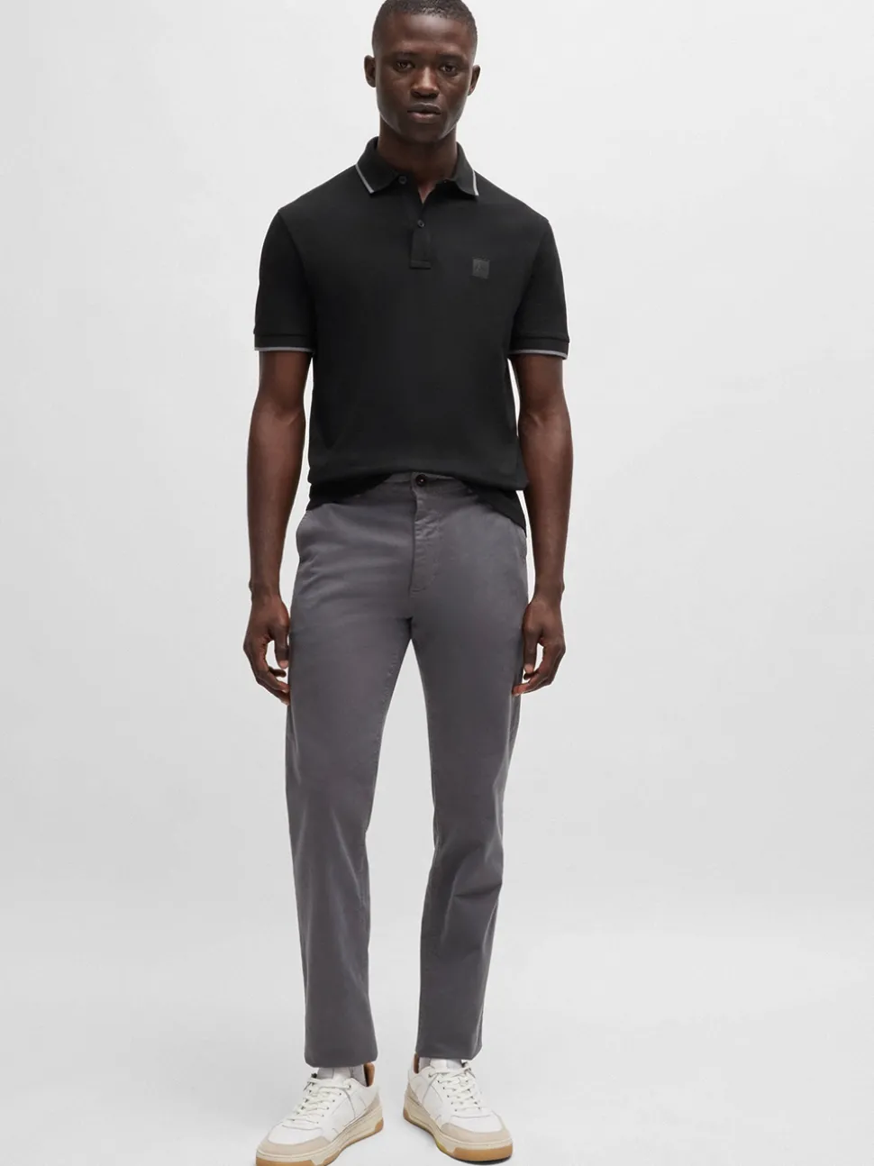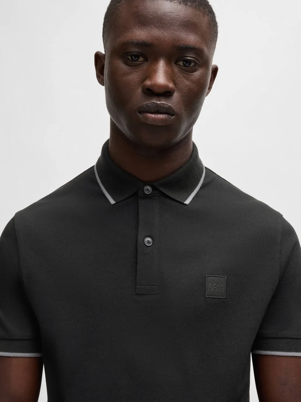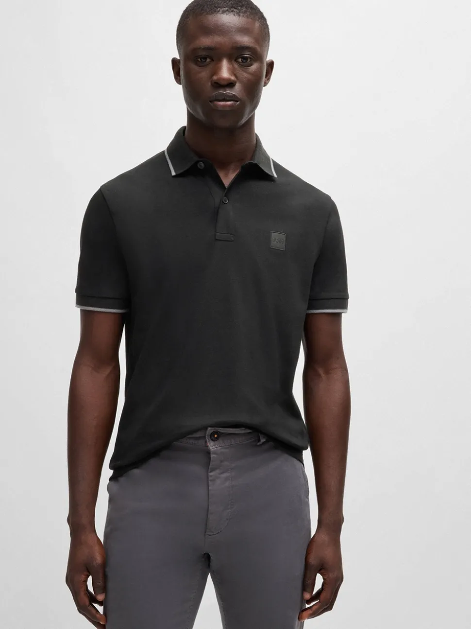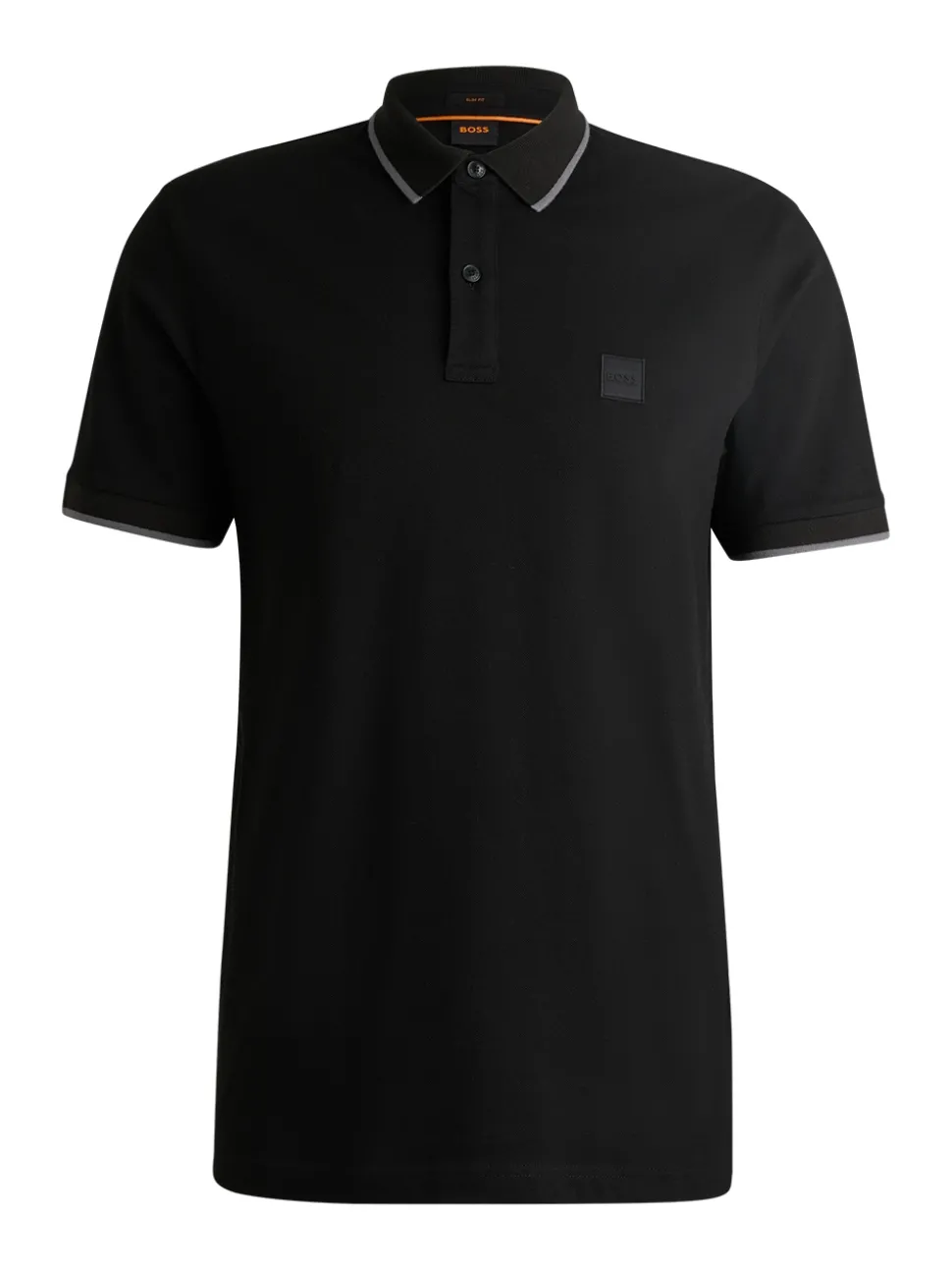The Boss Passertip Polo is a slim-fit, short-sleeve polo crafted from premium stretch cotton for maximum comfort and mobility. Featuring stylish tipping details on the collar and cuffs, this polo is finished with the iconic Boss logo on the chest, adding a touch of sophistication to your casual wardrobe. This polo pairs perfectly with chinos or slim fit jeans for a smart-casual look. Complete the outfit with loafers or clean white sneakers, and layer with a lightweight jacket for cooler days.