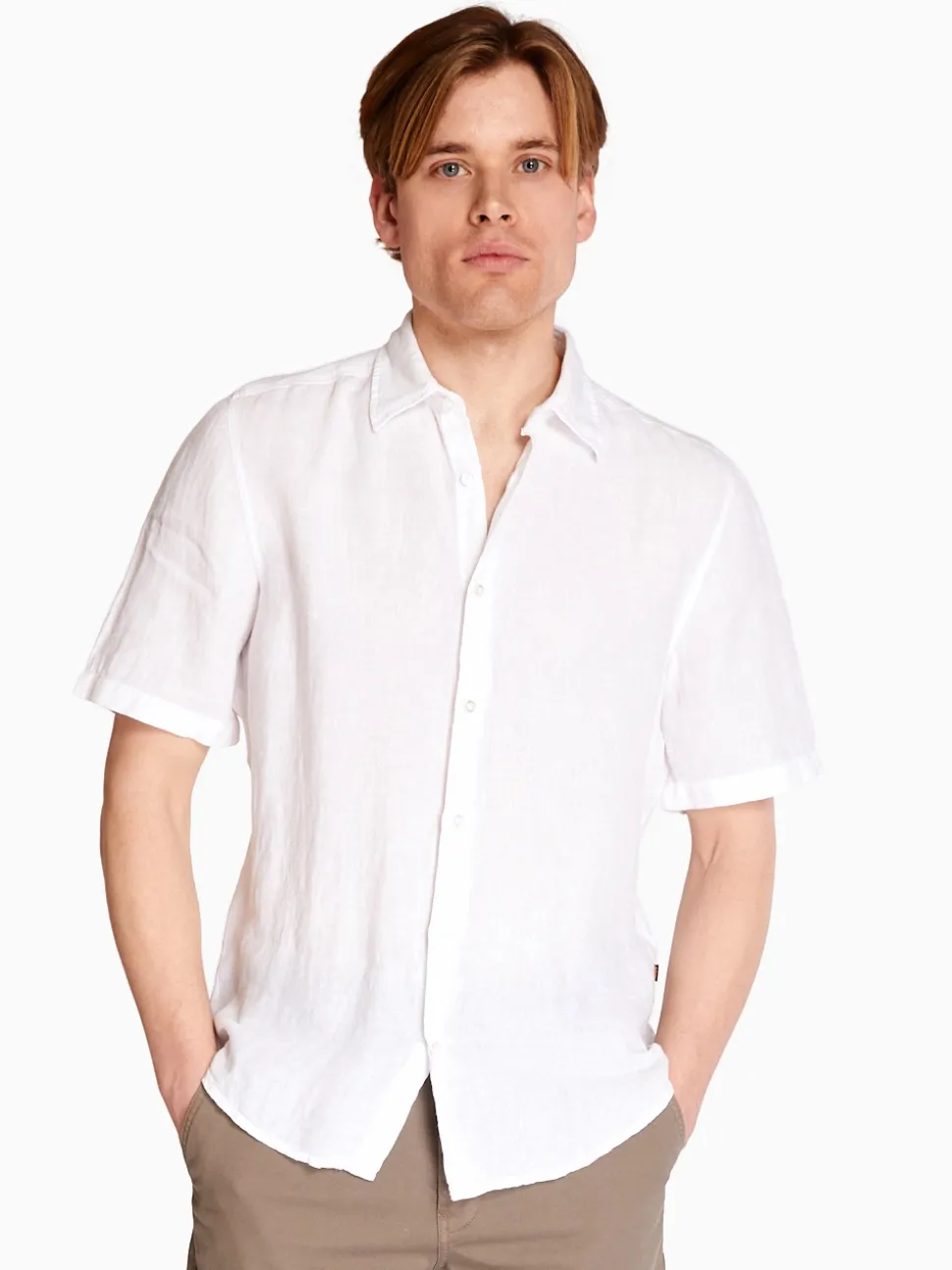 The BOSS Rash 2 Linen Shirt offers effortless style and comfort for warmer days. Made from 100% lightweight linen, it features a regular fit with short sleeves and a classic spread collar. Its breathable fabric makes it ideal for hot weather, while the refined design adds a touch of sophistication to any casual look.