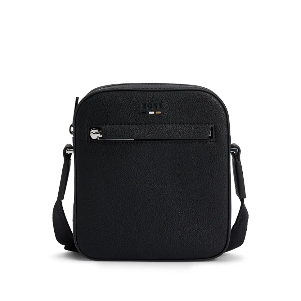 The Boss Ray Bag is a sleek and compact accessory crafted from premium leather, offering both style and practicality. Featuring a pebbled texture, this crossbody bag is designed with a front zip pocket for easy access to essentials and a spacious main compartment secured with a top zipper. The adjustable shoulder strap ensures comfortable wear, while the subtle BOSS logo on the front adds a refined touch. Perfect for daily use or travel, this leather bag blends luxury and function effortlessly.