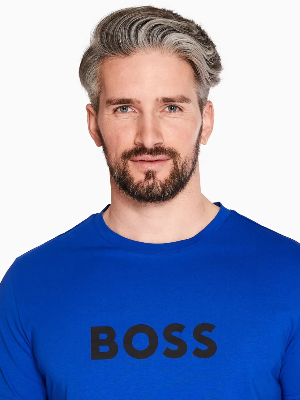 The Boss RN T-Shirt is a sleek and modern essential, designed in a slim fit for a tailored silhouette. Crafted from soft, breathable fabric, it features a classic crew neck and short sleeves for everyday comfort. A bold chest logo adds a stylish edge, making it a versatile choice for casual wear.
