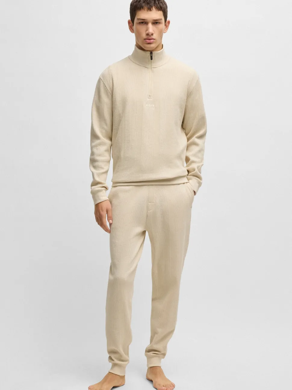 Boss Structured Quarter Zip Sweatshirt – Stone