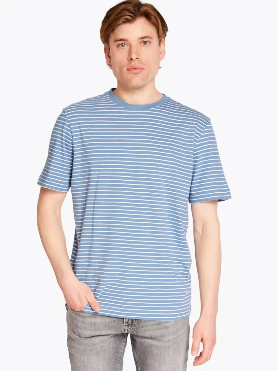 The Boss Stripe Tales Tee is a relaxed-fit essential crafted from soft cotton for all-day comfort. Featuring timeless horizontal stripes, a coordinating crew neckline, and a signature BOSS logo on the chest, this versatile T-shirt adds effortless style to any casual look.