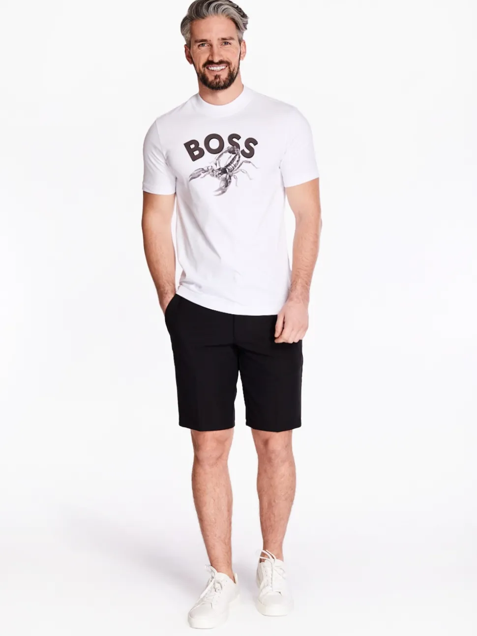 The Boss Te Bossfish T-Shirt is a stylish and statement-making piece, crafted in a regular fit for a comfortable yet modern silhouette. Made from 100% premium cotton, it offers a soft and breathable feel. The front showcases a striking scorpion graphic alongside the iconic BOSS logo, adding a bold touch to the design. With its classic crew neckline and short sleeves, this versatile tee is perfect for casual wear while making an impact.