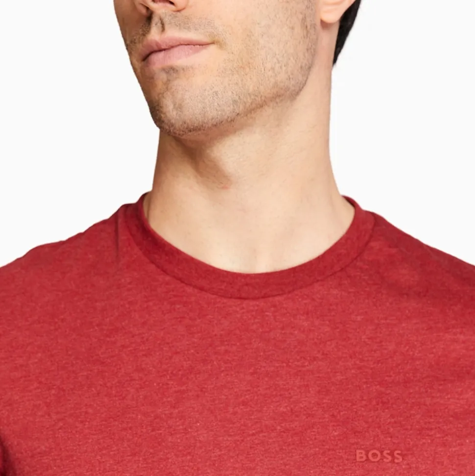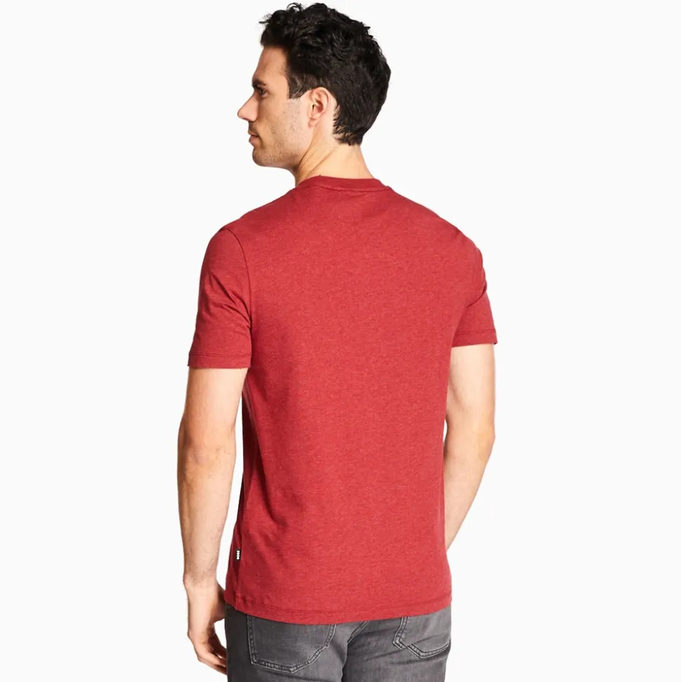 The Boss Thompson 01 Tee in red. Crafted from pure-cotton jersey, this T-shirt offers a soft and breathable feel against the skin. It features a straight fit, providing a classic and relaxed silhouette.The rubber-printed BOSS logo at the chest adds a touch of modernity and sophistication, elevating the overall look. Inside the collar, you’ll find a signature stripe that adds a subtle pop of color and a distinctive element. Whether you’re running errands or meeting friends, this BOSS Menswear T-shirt ensures both comfort and a touch of refined style.