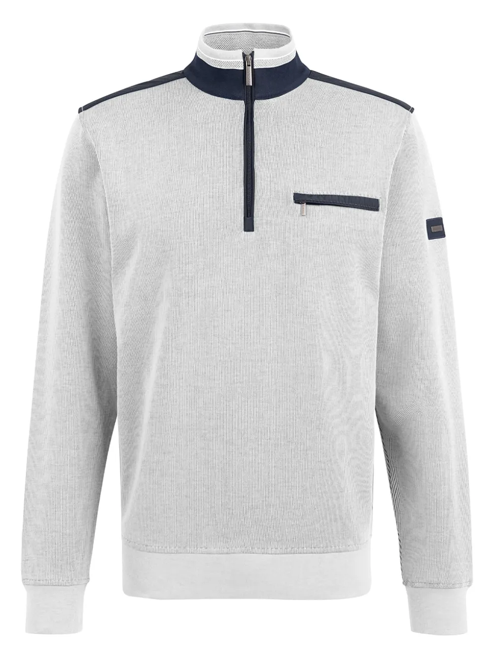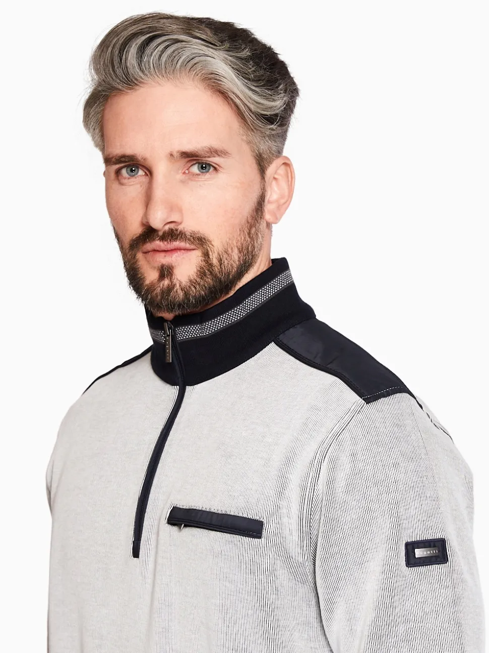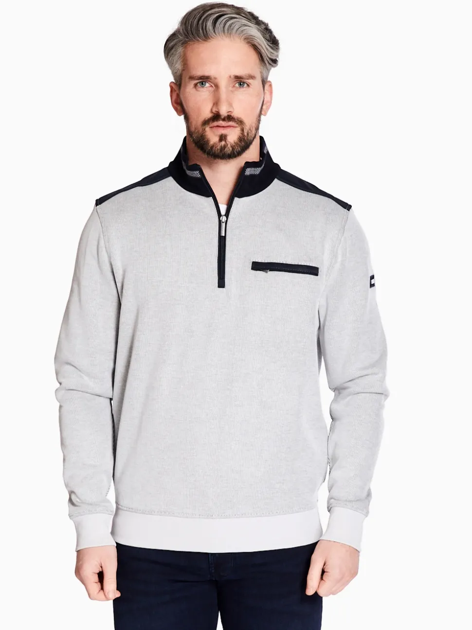 The Bugatti Ribbed Quarter Zip Sweat combines classic design with modern detailing. Featuring a regular fit and an all-over ribbed texture, it includes a quarter zip with a chest zip detail and a stand collar for a sleek look. Long sleeves, a cuffed hem, and cuffs ensure a polished finish, while the contrast inner collar adds a subtle touch of sophistication. Perfect for refined casual wear.