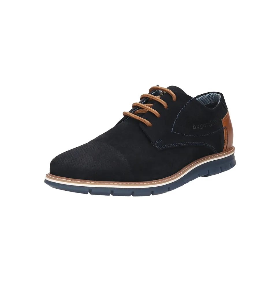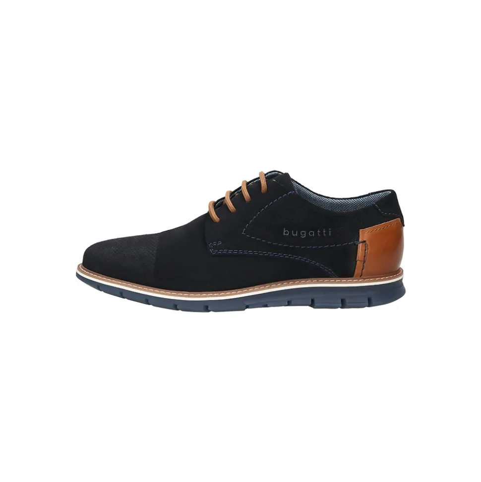 The Bugatti Simon Comfort Suede Shoe, a fusion of style and comfort. Crafted from luxurious suede, these lace shoes feature a sleek design highlighted by a contrasting heel cap and laces, adding a touch of sophistication. Built for durability and traction, they are equipped with a sturdy rubber sole. Finished with the iconic Bugatti logo on the side, these shoes are a statement of timeless elegance and modern refinement. Elevate your footwear collection with the Bugatti Simon Comfort Suede Shoe for effortless style and all-day comfort.