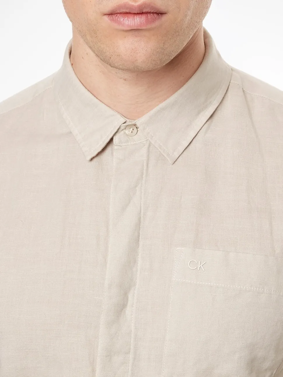 Calvin Klein Cotton Linen Chest Pocket Shirt – Stone