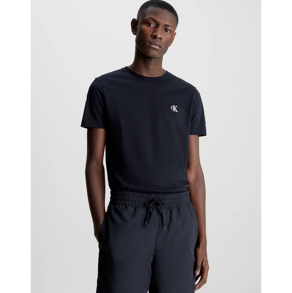 One of your Calvin Klein Essentials; Timeless staples for the modern wardrobe. This T-shirt is 100% sustainable, made of organic cotton. This tee is deisgned in a slim fit with a crew neckline, short sleeves, stripe binding inside the collar, and Calvin Klein embroidery on the chest. Sustainable style and quality in one essential piece.