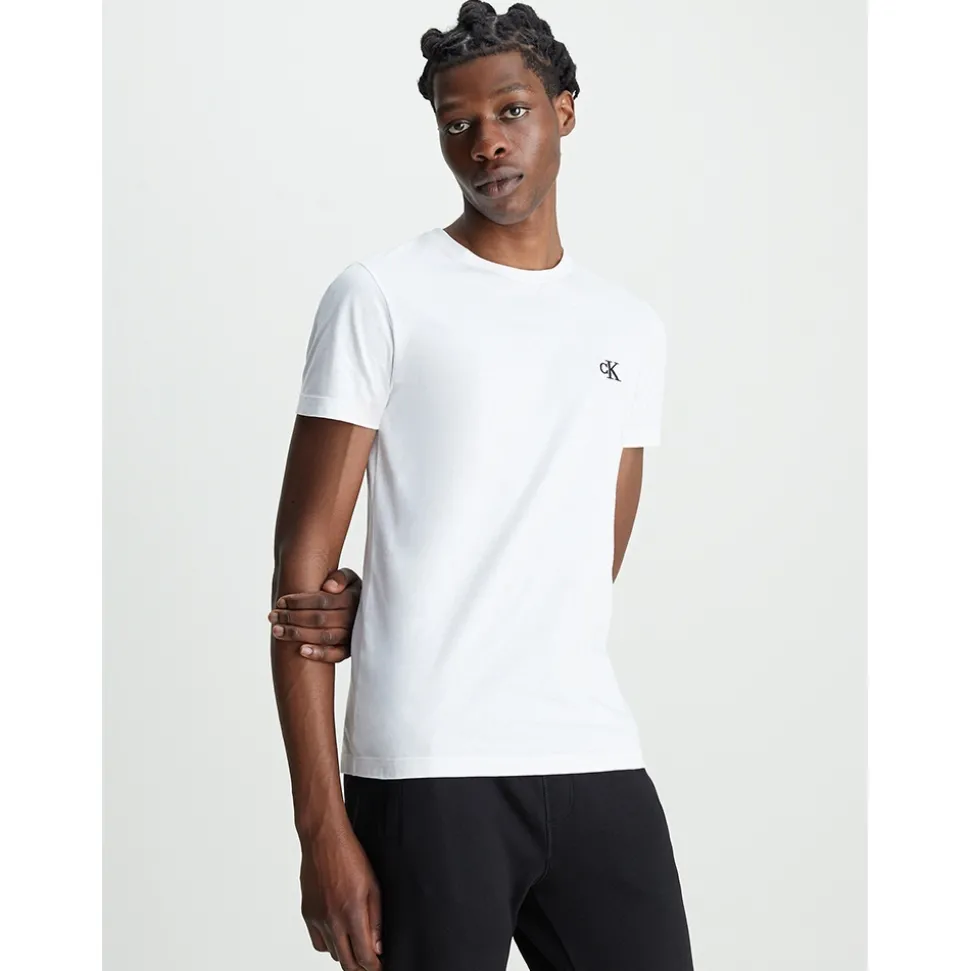 One of your Calvin Klein Essentials; Timeless staples for the modern wardrobe. This T-shirt is 100% sustainable, made of organic cotton. This tee is deisgned in a slim fit with a crew neckline, short sleeves, stripe binding inside the collar, and Calvin Klein embroidery on the chest. Sustainable style and quality in one essential piece.