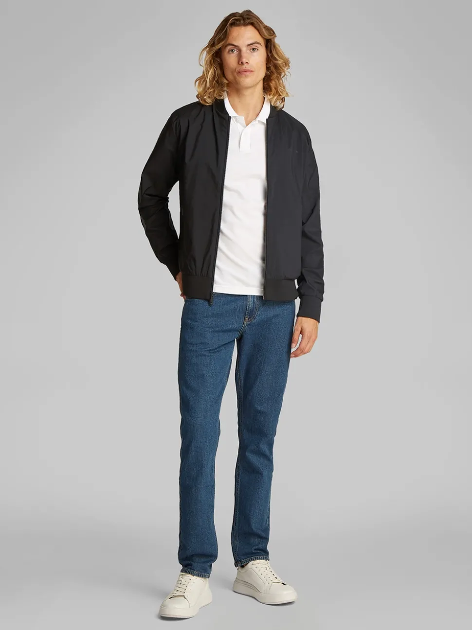 The Calvin Klein Matte Bomber Jacket is a sleek and versatile outerwear staple, designed in a comfortable regular fit. Featuring a minimalist matte finish, ribbed trims, and a full-zip closure, it offers a modern, streamlined look. Finished with discreet Calvin Klein branding, this jacket pairs effortlessly with jeans or chinos for a stylish, everyday outfit.