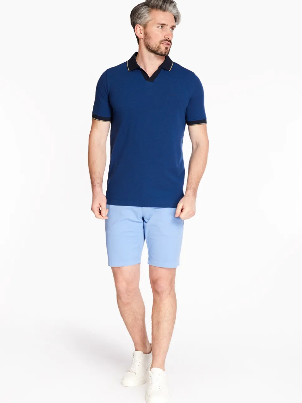 The Club 1879 Open Neck Polo Shirt blends modern style with comfort. Crafted from stretch cotton in a slim fit, it features a V-neck, short sleeves, and contrast tipping detail on the collar and cuffs. Finished with the Club 1879 logo on the chest, it’s a refined choice for smart-casual dressing.