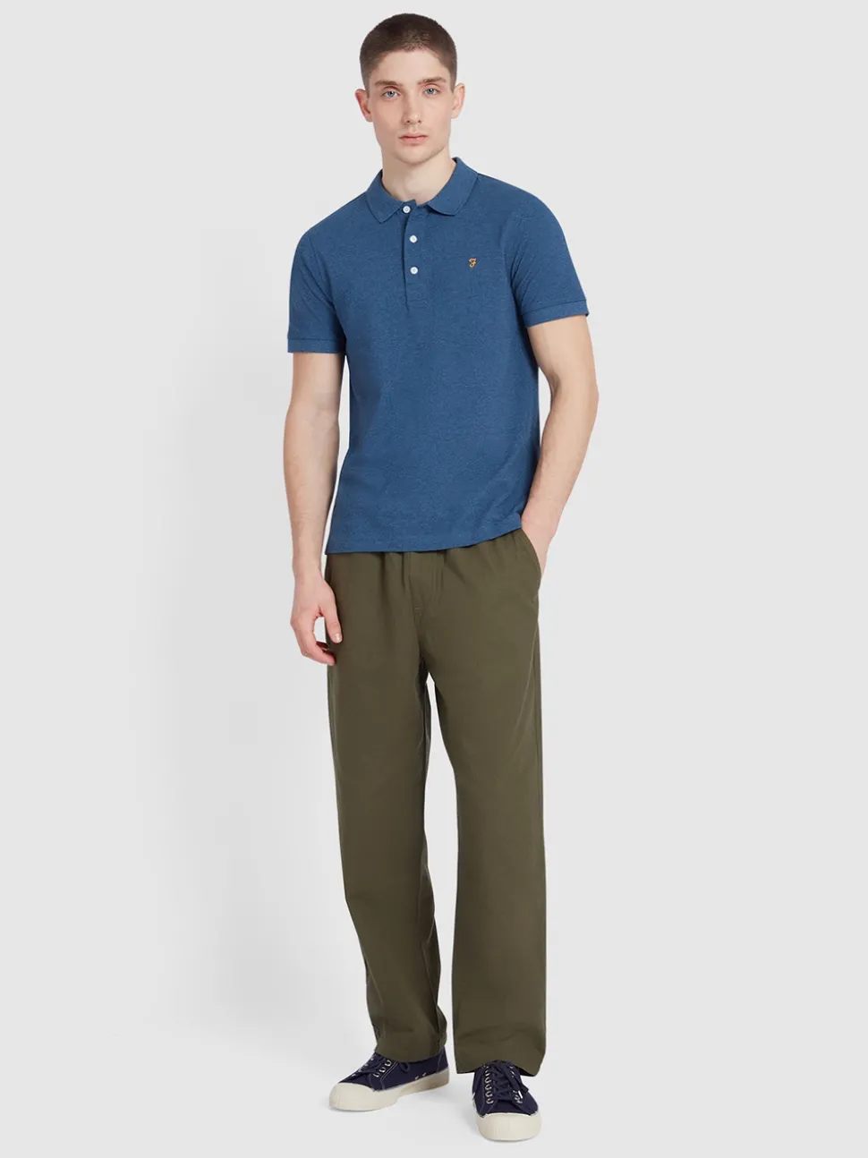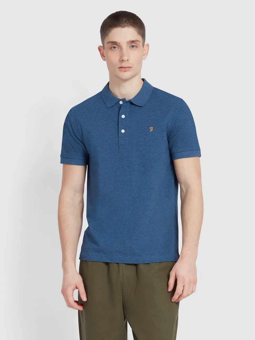 The Blanes slim fit polo shirt from Farah, a must-have for your collection. Crafted from a Pique cotton, this polo will ensure comfort and breathability. Including a rib knit collar, three button placket and signature Farah logo embroidered on the chest. A versatile piece for any occasion, wear casually with a denim short and trainers for an easy summer look or smarten it up, with a jean for a smart casual day at the office.