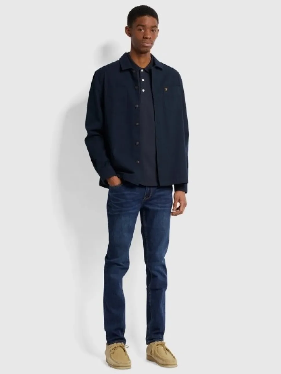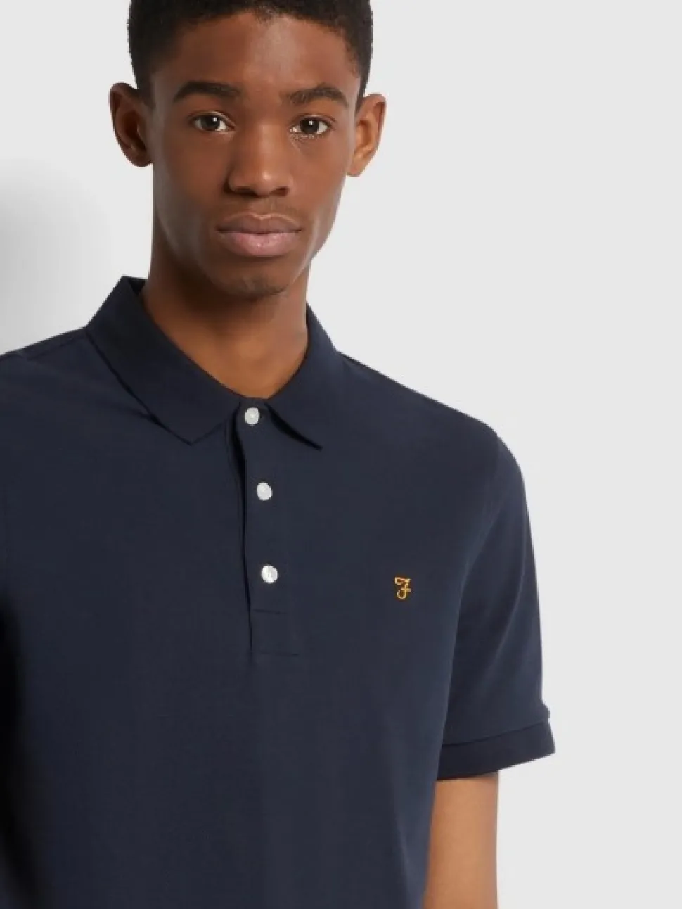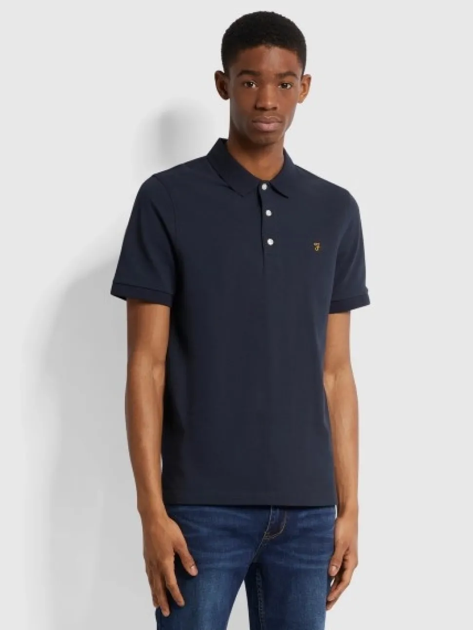 The Blanes slim fit polo shirt from Farah, a must-have for your collection. Crafted from a Pique cotton, this polo will ensure comfort and breathability. Including a rib knit collar, three button placket and signature Farah logo embroidered on the chest. This navy polo shirt is a versatile piece for any occasion, wear casually with a denim short and trainers for an easy summer look or smarten it up, with a jean for a smart casual day at the office.
