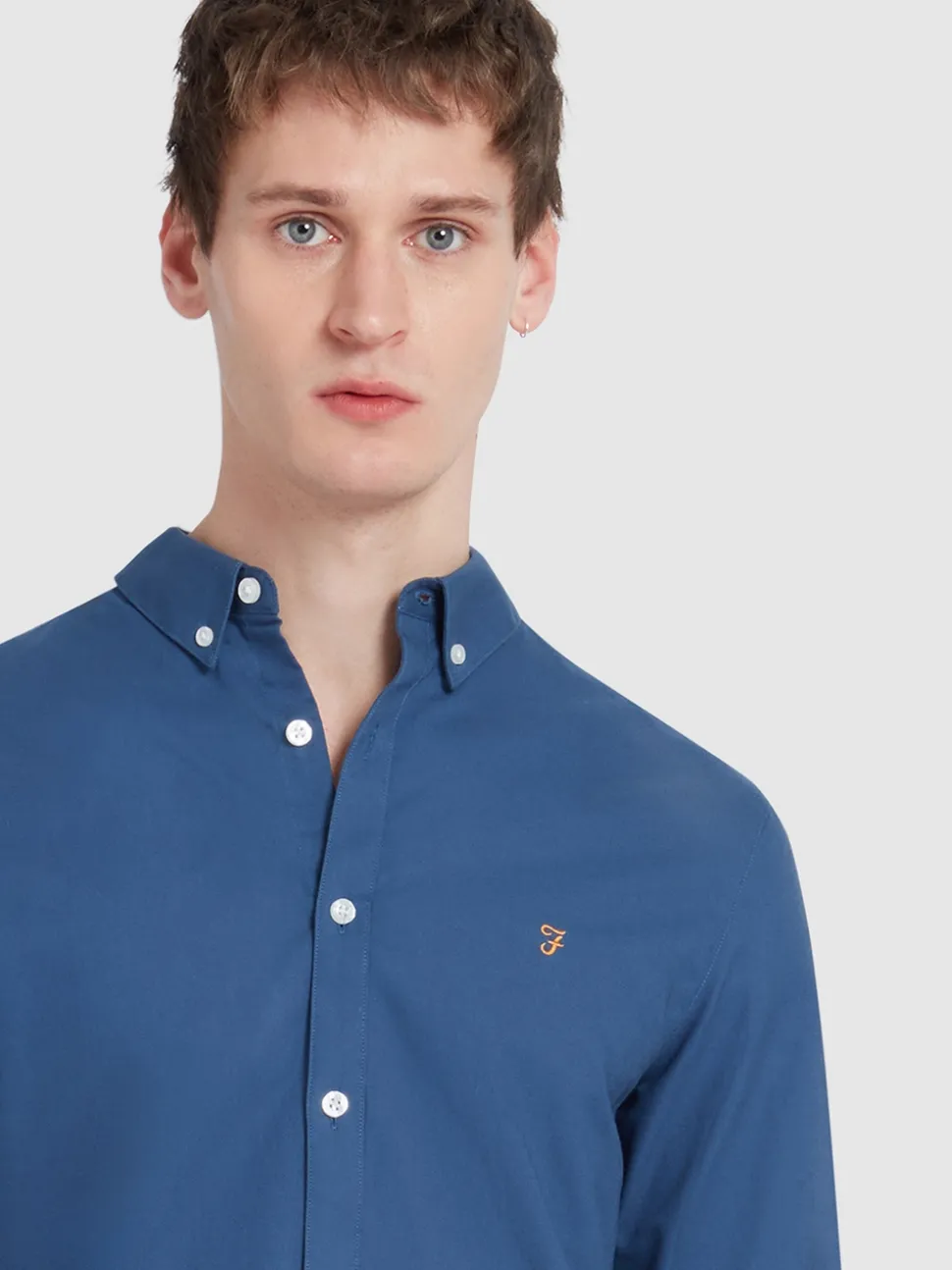 The Brewer long sleeve shirt from Farah a staple for any mans wardrobe when it comes to smart casual attire. Crafted from an Organic Cotton in an Oxford weave this shirt will wear well during the day whilst keeping you looking sharp. Complete with button down collar to offer a more casual look detailed with Farah logo embroidered on the chest for a touch of signature subtlety. A shirt that will transition well with a pair of jeans in the evening.