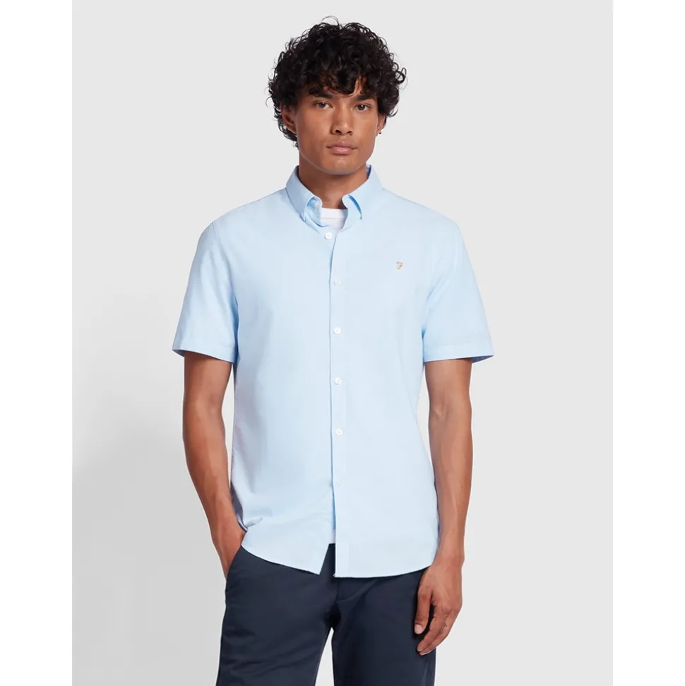 The Brewer short sleeve shirt from Farah a staple for any mans wardrobe when it comes to smart casual attire. Crafted from an Organic Cotton in an Oxford weave this shirt will wear well during the day whilst keeping you looking sharp. Complete with button down collar to offer a more casual look detailed with Farah logo embroidered on the chest for a touch of signature subtlety. A shirt that will transition well with a pair of jeans in the evening.