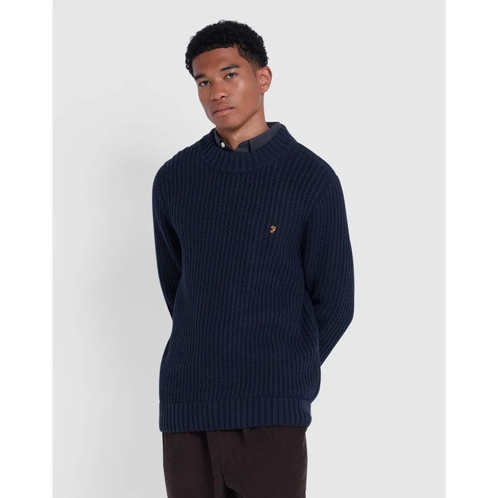 The Farah Burlington Fisherman Sweater is a classic winter essential, made from 100% cotton for breathable warmth and comfort. Featuring a chunky knit design, this regular-fit sweater offers a timeless fisherman-style look. The crew neck and long sleeves make it ideal for layering, while the Farah logo on the chest adds a subtle, stylish touch. Perfect as a cozy winter layer, it pairs well with jeans or chinos for a relaxed yet polished outfit during the colder months.