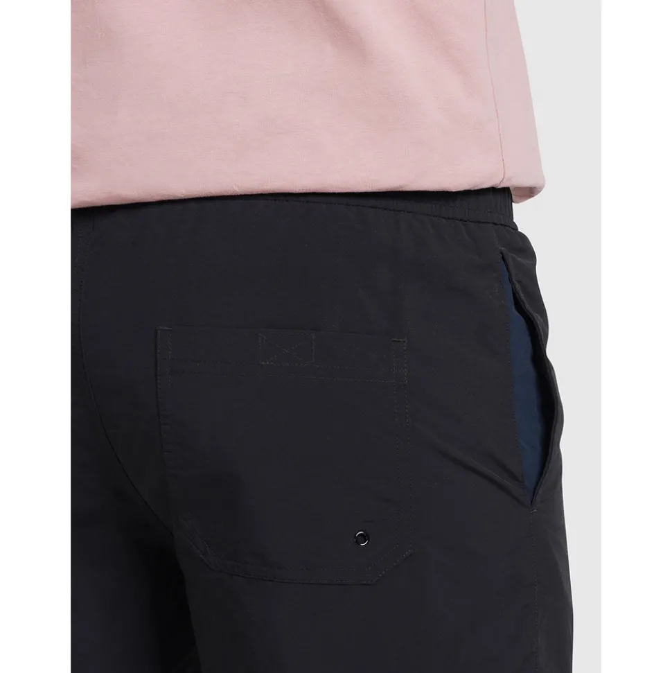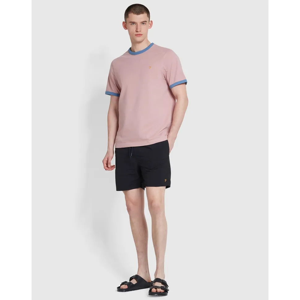 The Colbert Plain Swim Shorts from Farah are medium length and designed from quick drying material to best suit your need for style and practicality. These shorts will have you looking crisp both in and out of the water. Finished with a drawstring and embroidered gold stich Farah Logo to sharpen the overall look and allow for easy pairing with our range of Farah t-shirts.