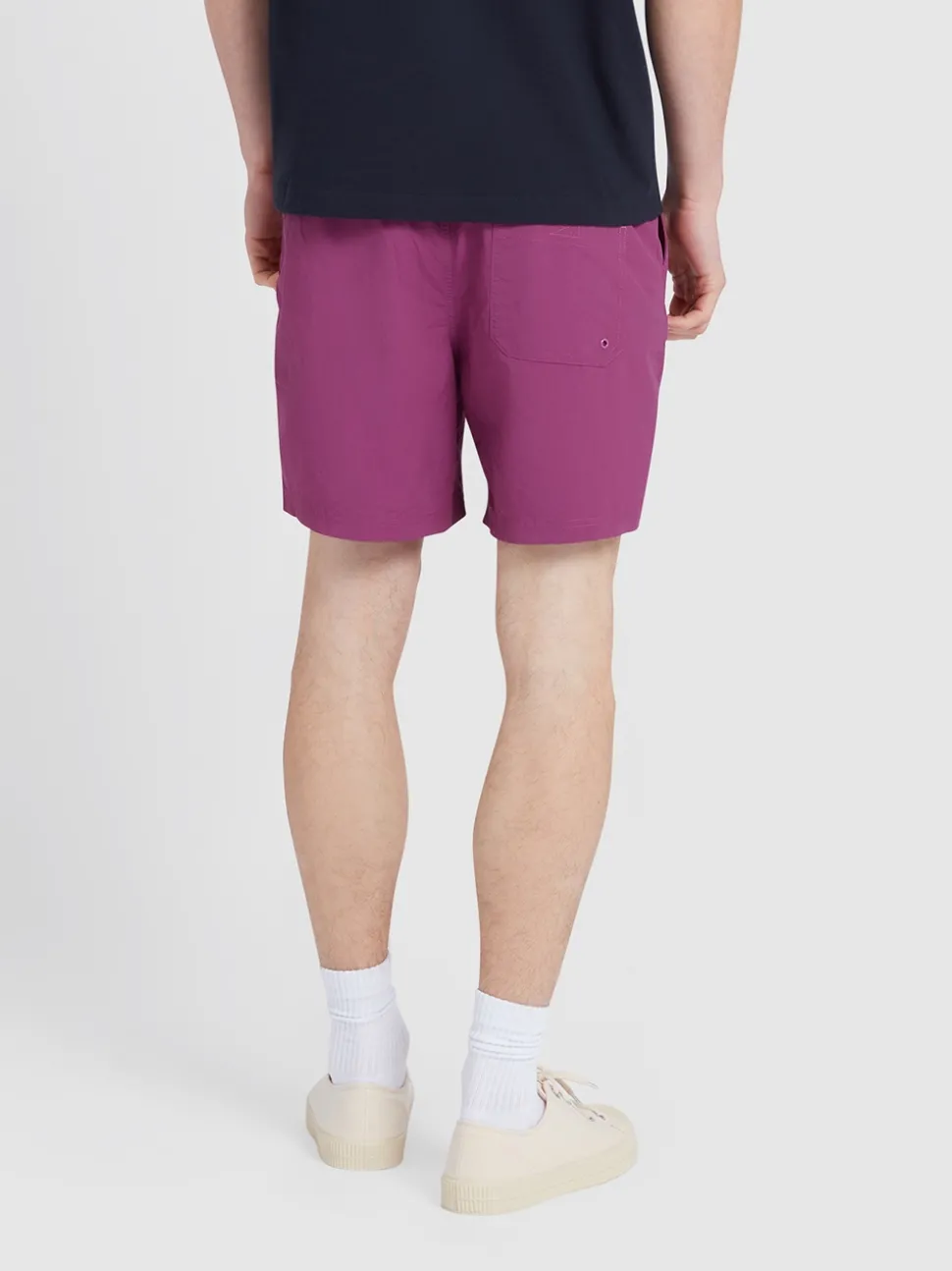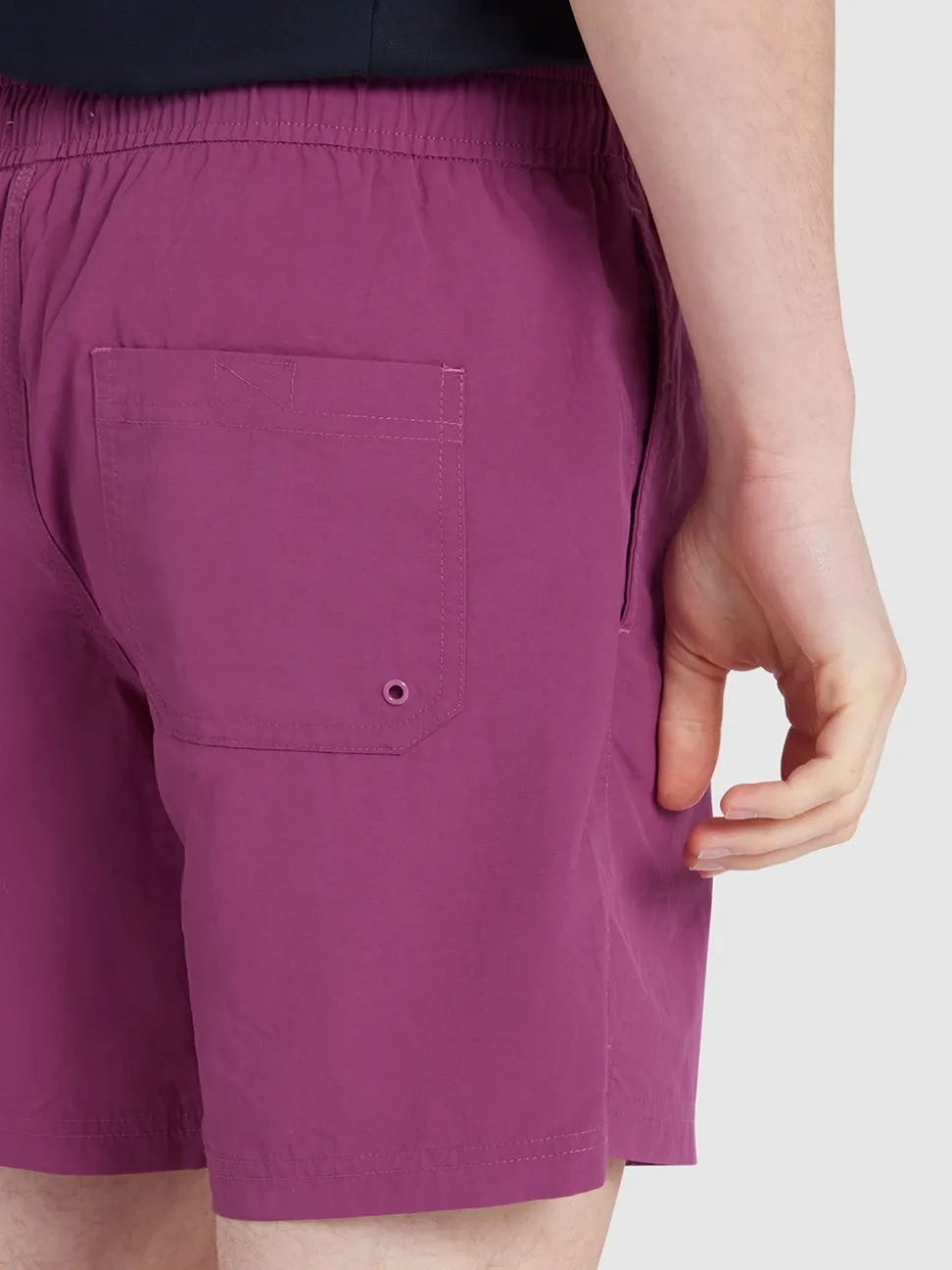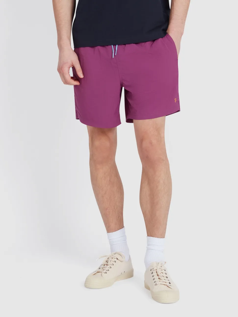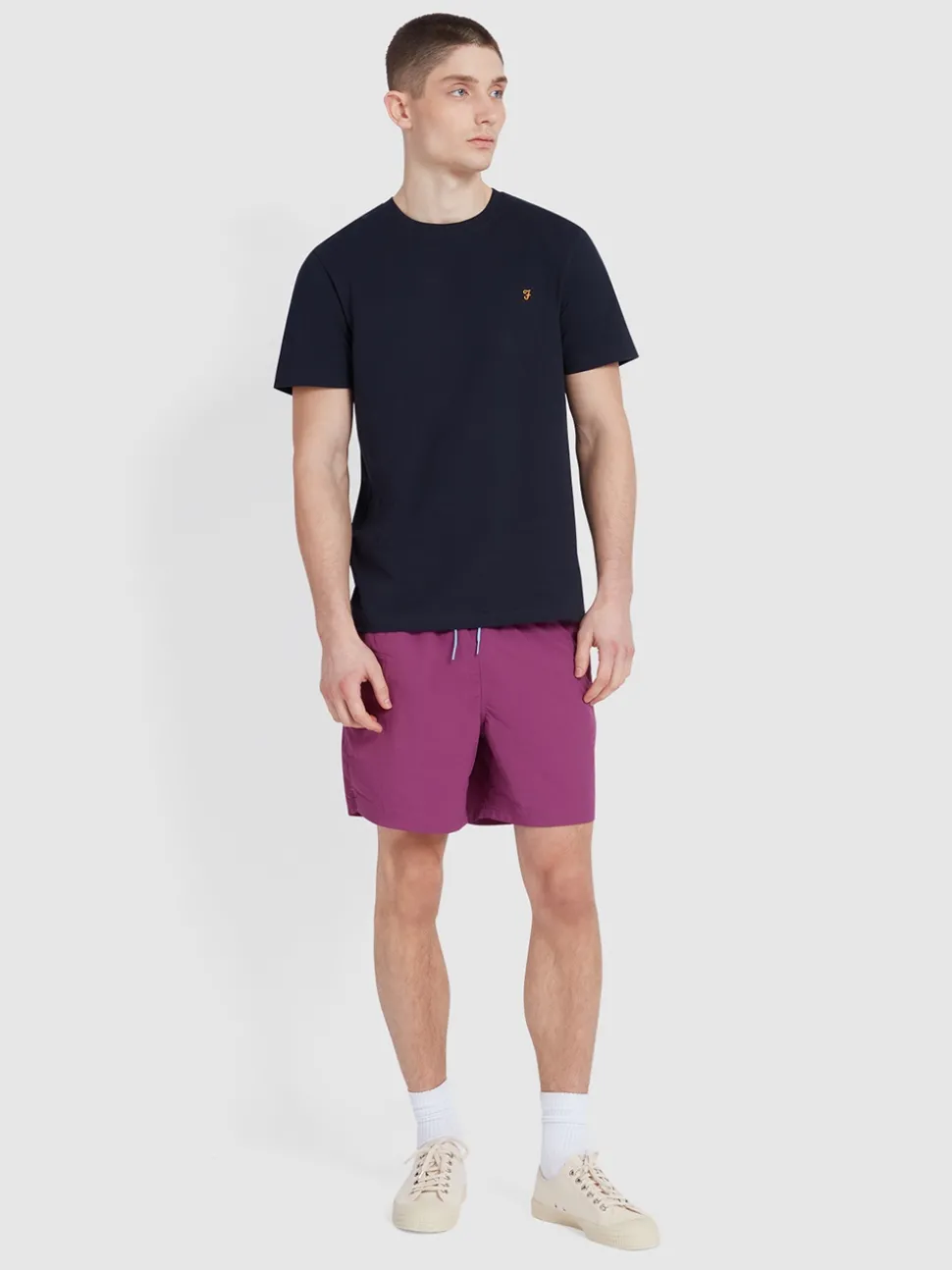 The Colbert Plain Swim Shorts from Farah are medium length and designed from quick drying material to best suit your need for style and practicality. These shorts will have you looking crisp both in and out of the water. Finished with a drawstring and embroidered gold stich Farah Logo to sharpen the overall look and allow for easy pairing with our range of Farah t-shirts.