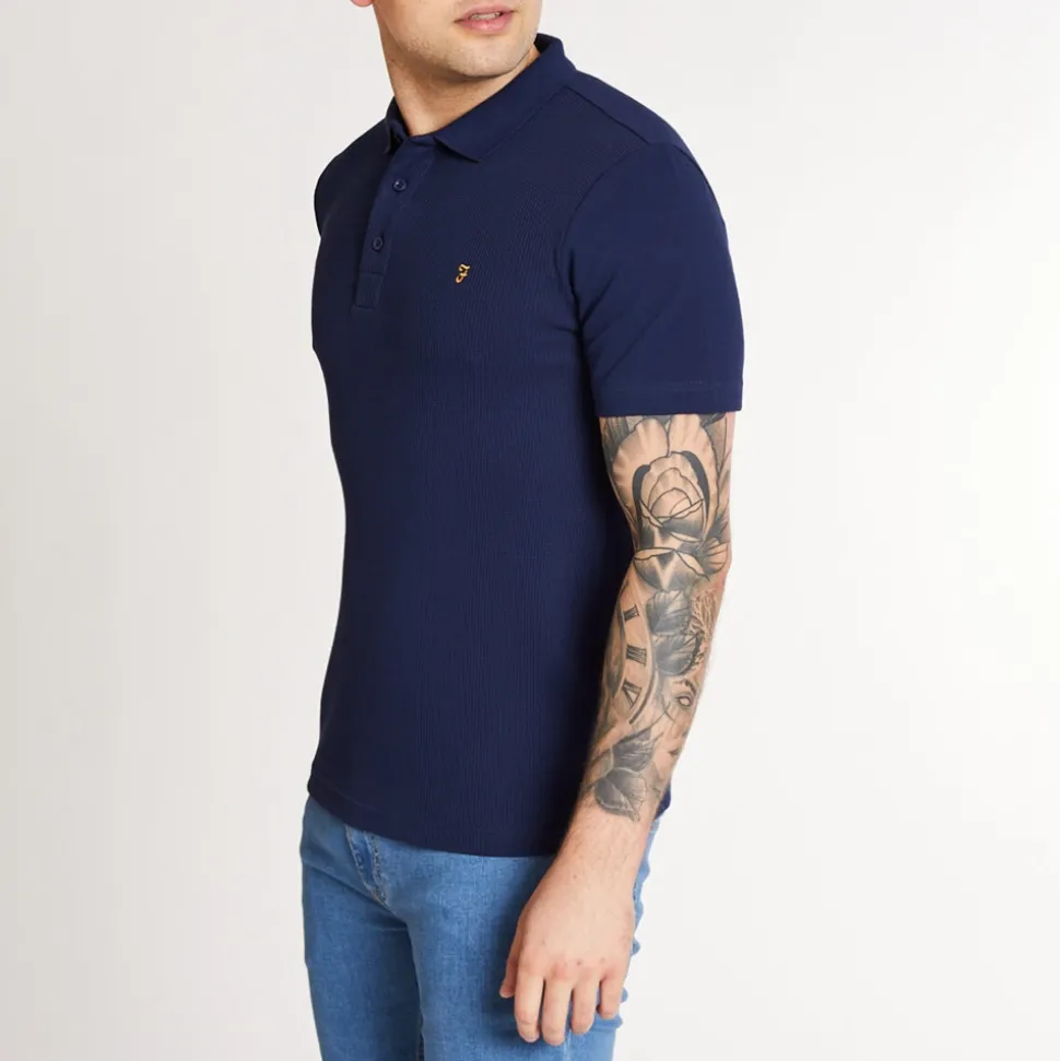 The Forester Slim Fit Cotton Polo Shirt from Farah a great piece for your collection. This indigo polo shirt is a versatile piece for any occasion wear casually with a jeans and trainers for an easy stylish look or smarten it up if it is a smart casual day at the office. Crafted from a Pique Cotton this polo will ensure comfort and breathability. Complete with contrast tipped collar and cuffs, three button placket and signature Farah logo embroidered on the chest.