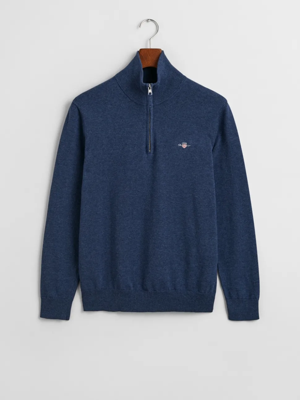The GANT Classic Cotton Quarter Zip offers timeless style and comfort with a regular fit and a versatile half-zip collar. Crafted with ribbed detailing at the neck, hem, and cuffs, it’s finished with an embroidered GANT graphic on the chest for a polished, iconic look. Perfect for layering in any season.