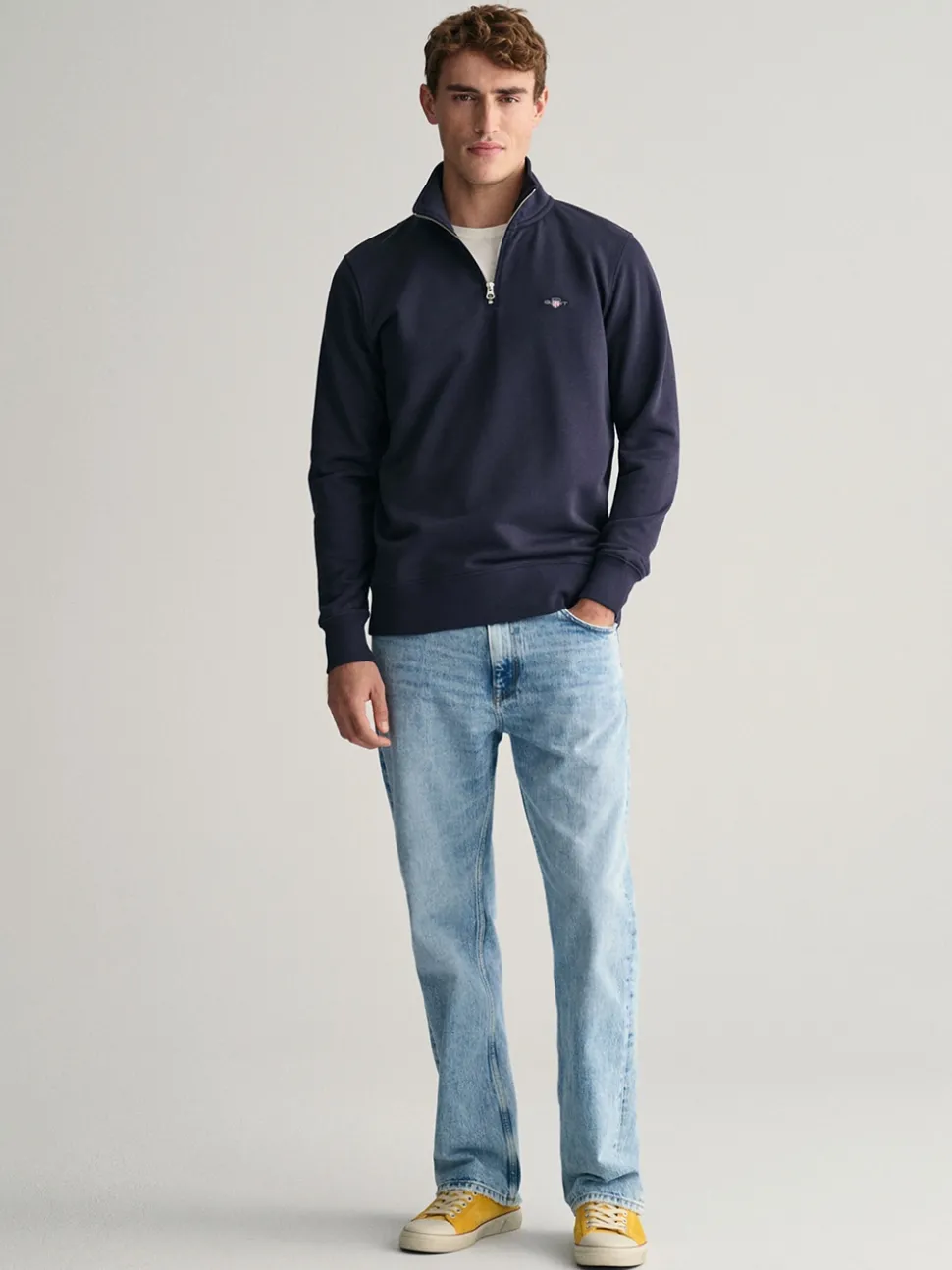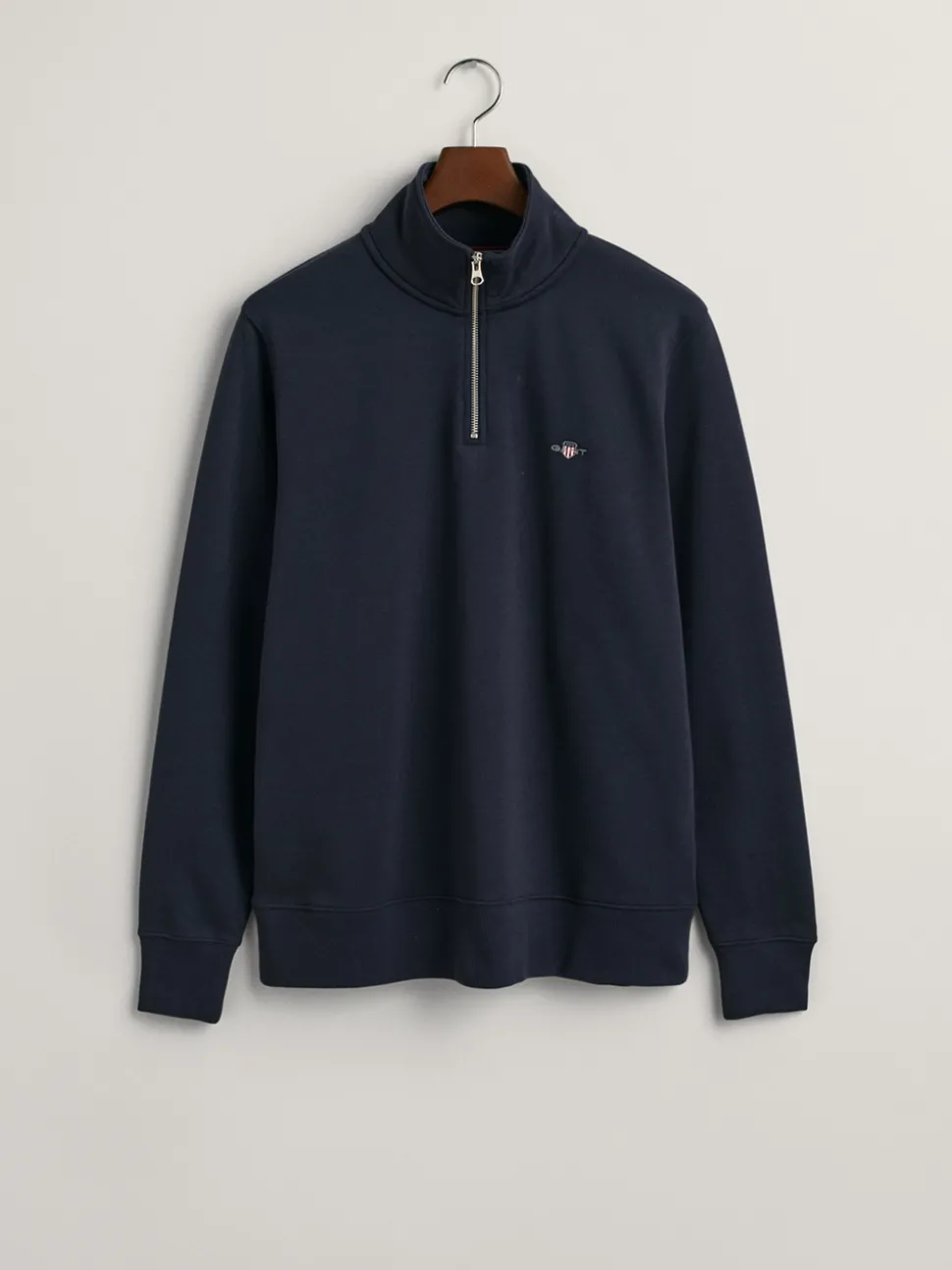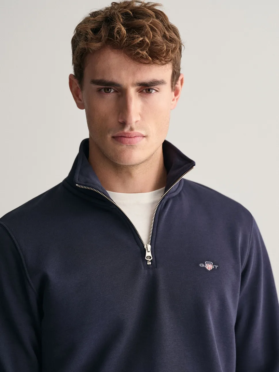 The GANT Shield Quarter Zip is a versatile layer with a regular fit and a sleek, understated design. Featuring a small-scale shield graphic embroidered on the chest, this half-zip sweatshirt is finished with soft ribbing at the hem and cuffs for added comfort and a polished look. Perfect for casual and smart-casual outfits alike.