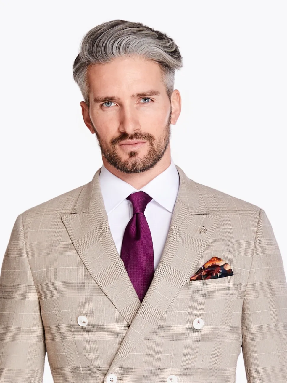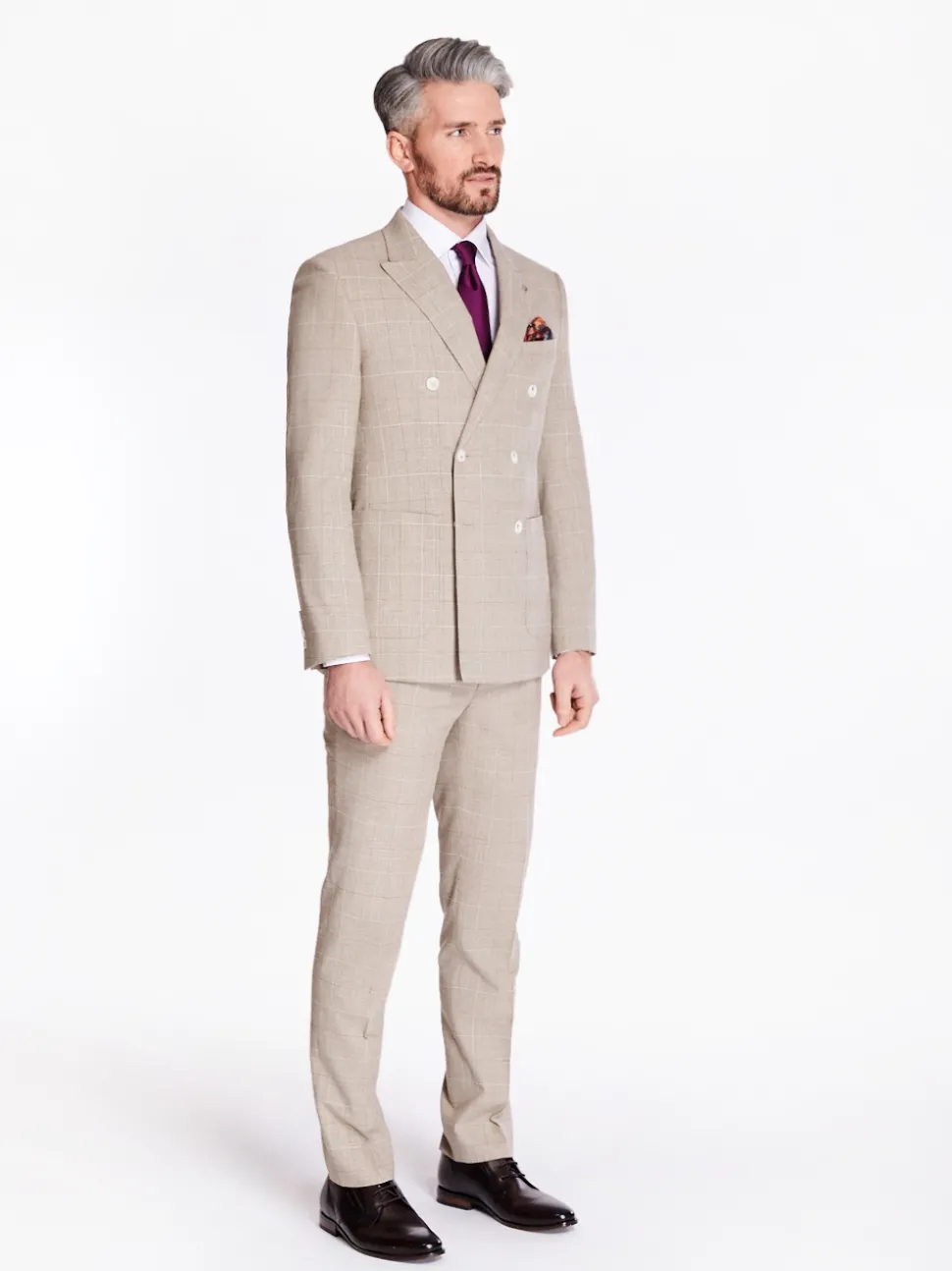 Herbie Frogg Check Double Breasted 2 Piece Suit – Stone