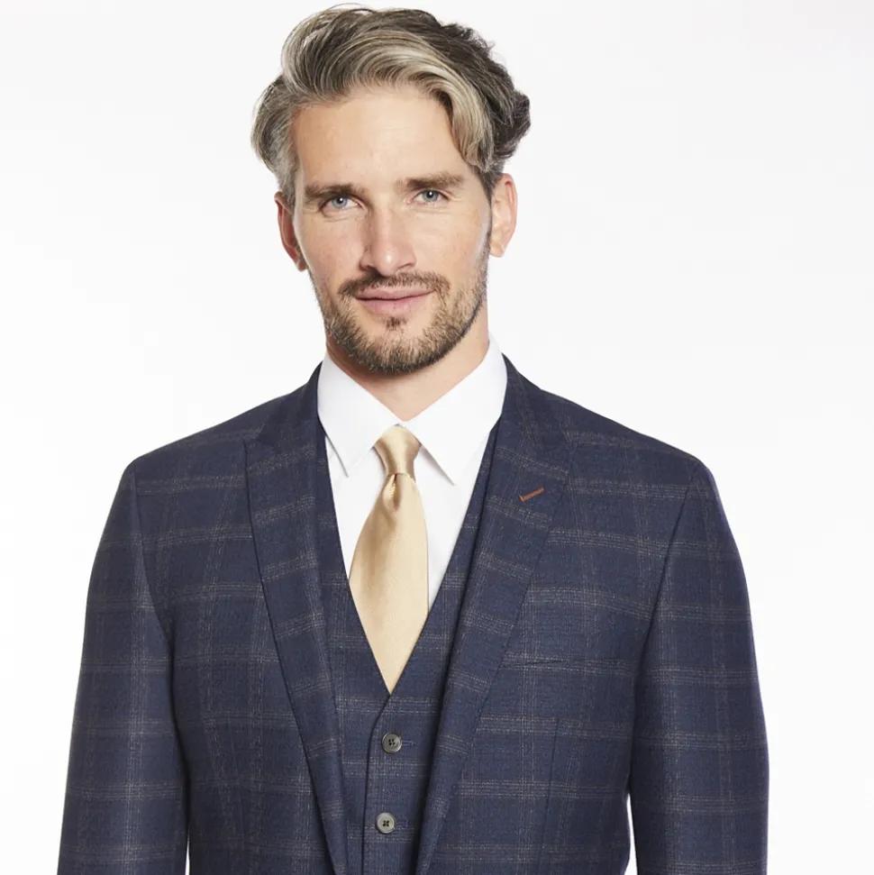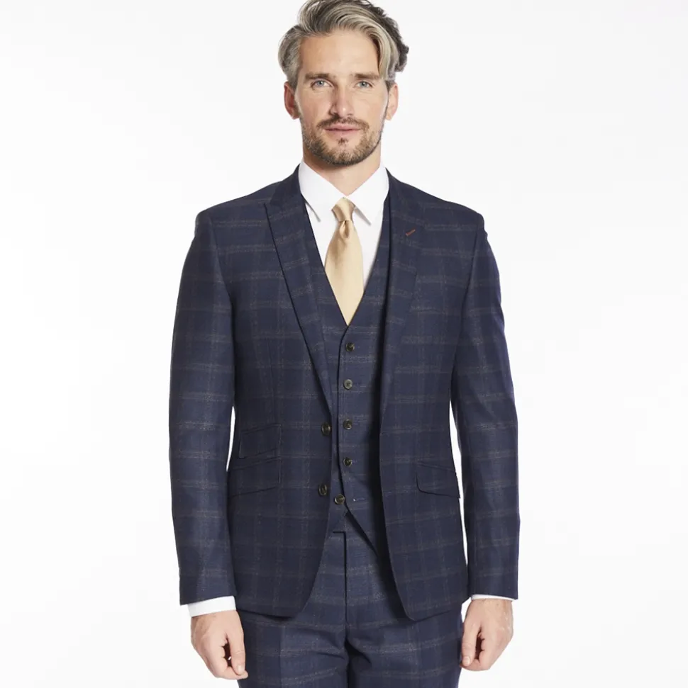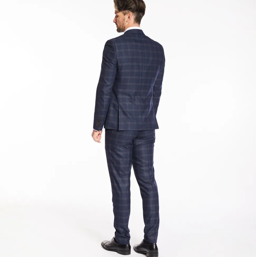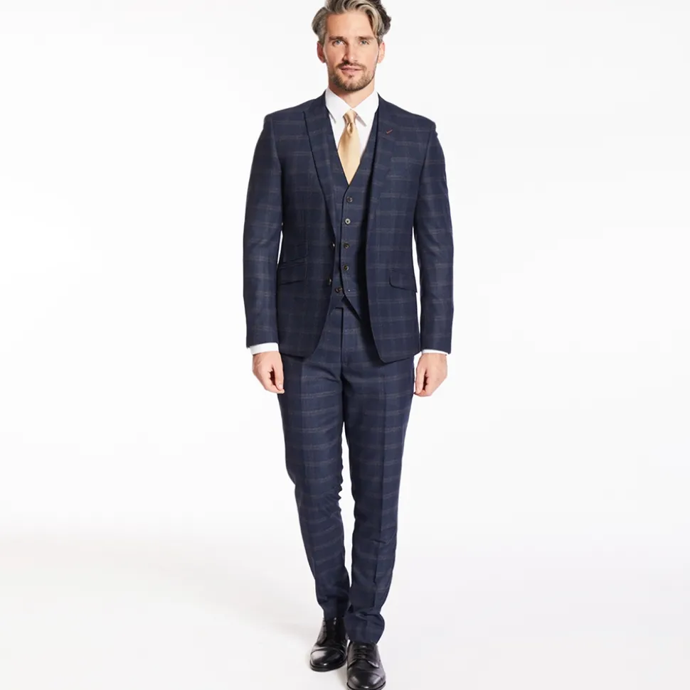 Marco Capelli Check Peak Lapel Three Piece Suit Xslim – Navy