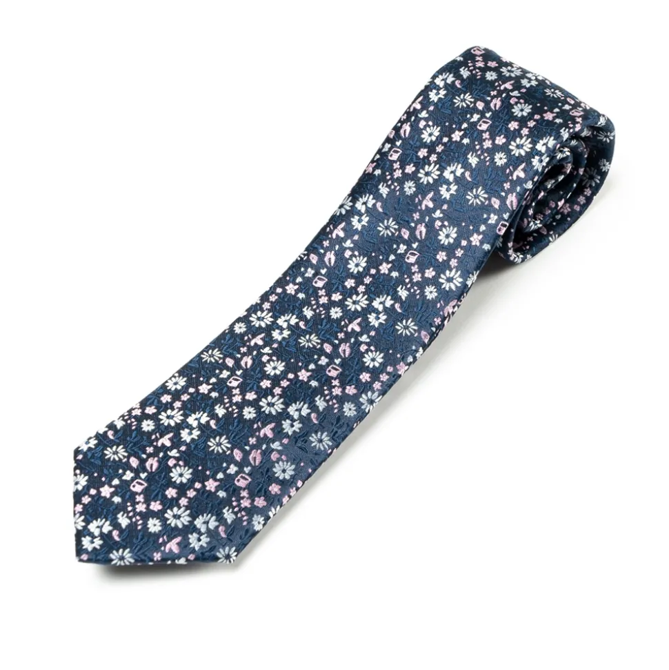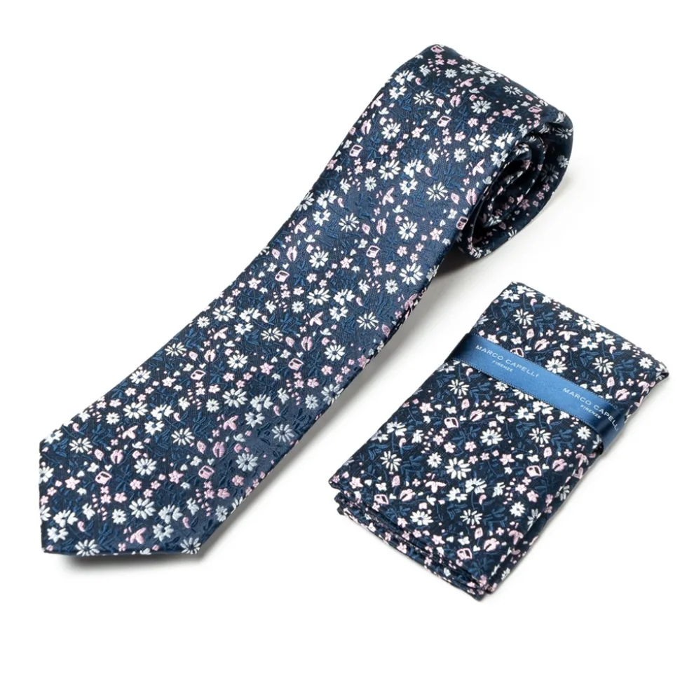 Marco Capelli Floral 7cm Tie With Pocket Square – Navy