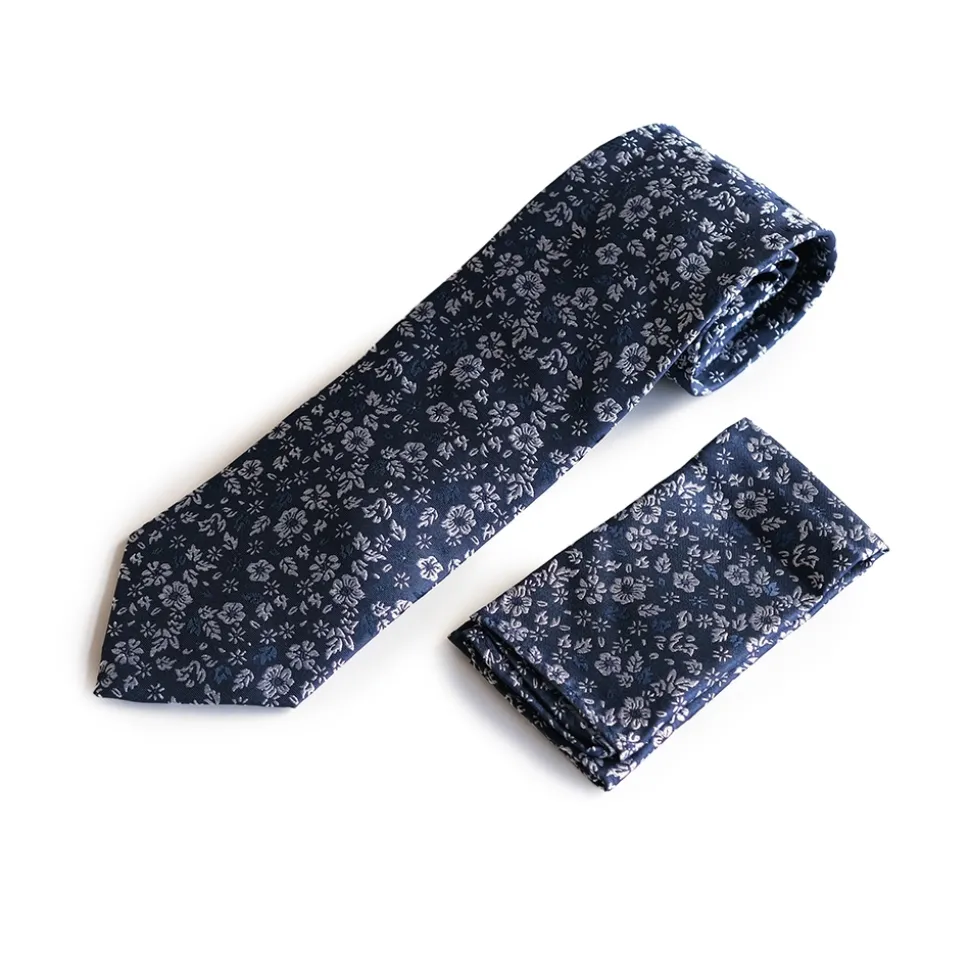 Marco Capelli Floral 8cm Silk Tie With Pocketsquare – Navy