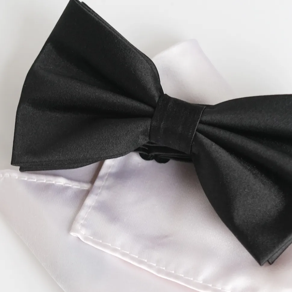 Marco Capelli Silk Black Bow & White Pocketsquare – Black
