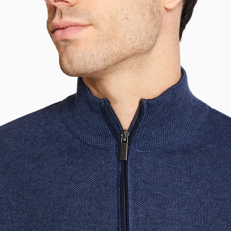 Marco Capelli Structured Two Tone Cotton Half Zip – Navy