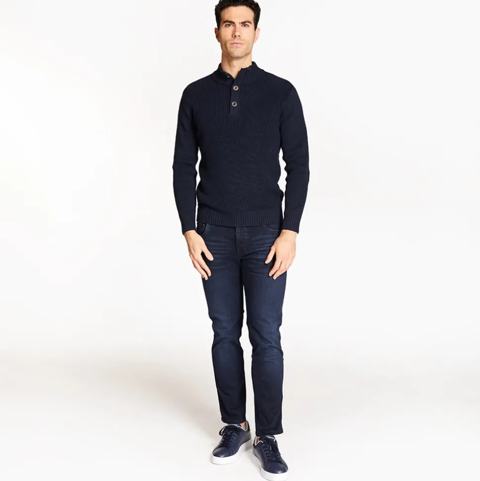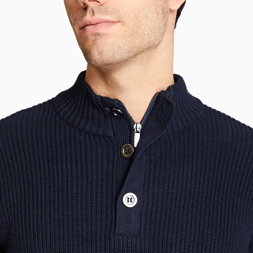Marco Capelli Zip & Button Fisherman Rib Knit – Navy