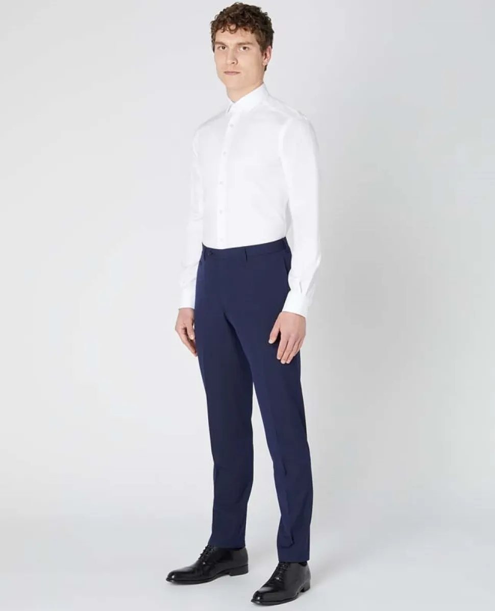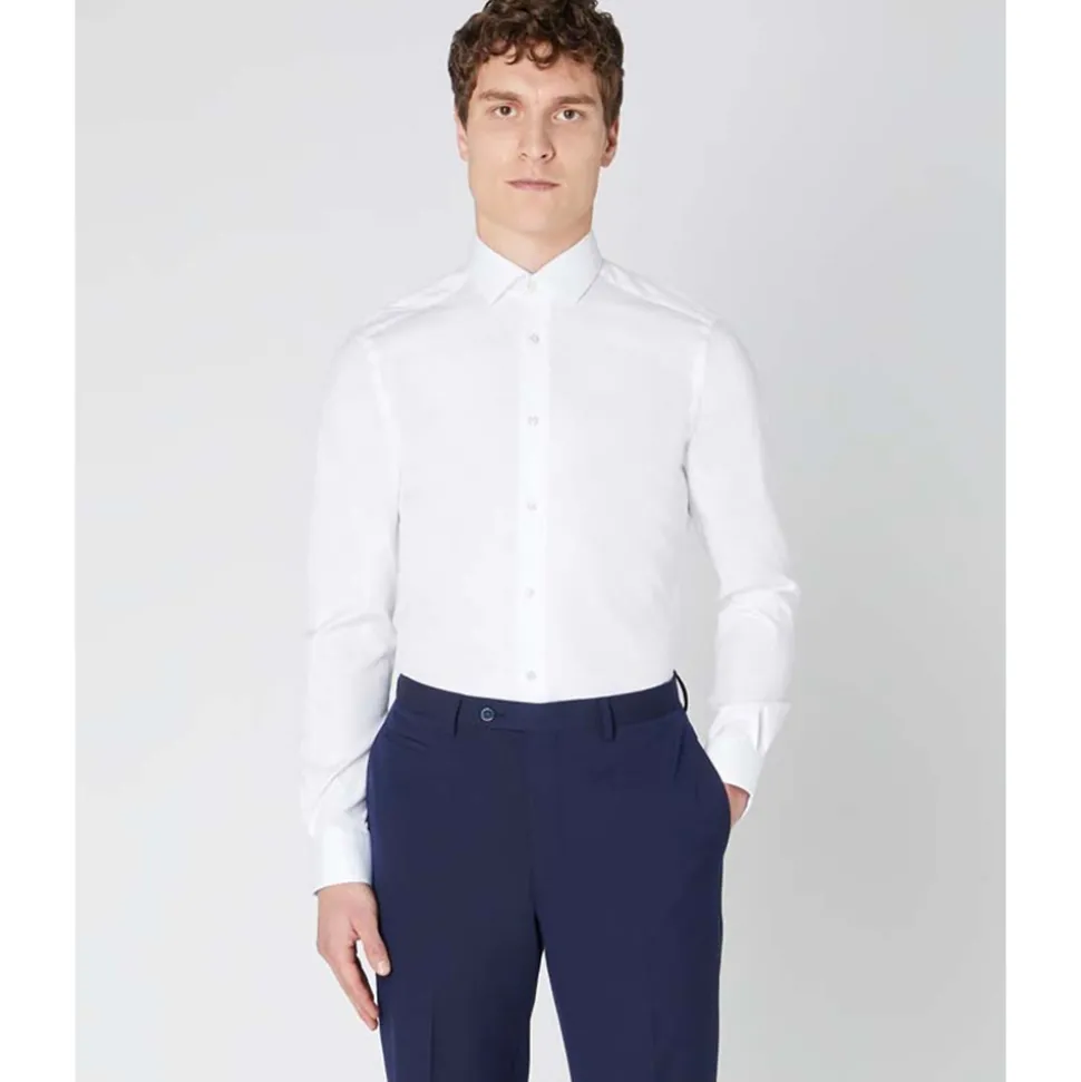 The Kirk structure shirt from Remus Uomo in white, is a must have for your formal wardrobe. Crafted from 100% breathable cotton in a premium two-fold wrinkle free fabric. With a slight square lattice pattern running throughout. Featuring a full button-down placket, double button cuffs, interior patterned French spread collar and off-white pearl buttons. Match this shirt with your favourite sports jacket, a classic navy chino and a smart loafer for any formal occasion.