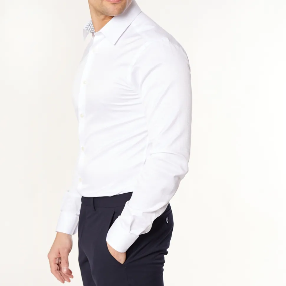 This Slim Fit mini pattern shirt from Remus Uomo is an injection of personality into your style. Crafted from a cotton stretch fabric this shirt will move well with you throughout the day. A great shirt to lift a simple plain outfit simply pair with a navy trouser and smart trainer for a casual office look. Featuring a French front and point collar this shirt features light blue buttons down the front and cuffs. A versatile shirt to carry your through different occasions.