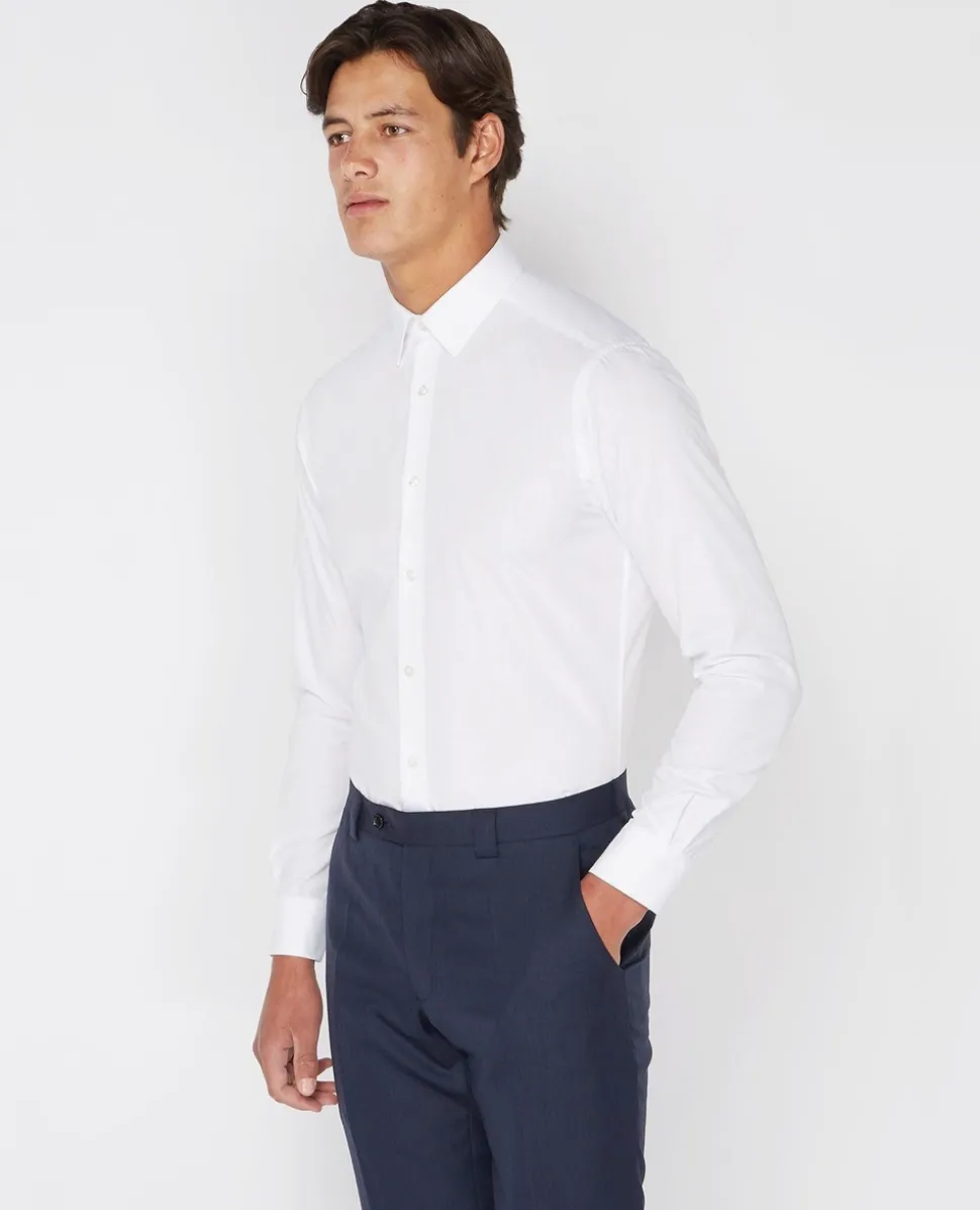 This Remus Uomo slim fit cotton blend formal shirt is a staple piece for your formalwear wardrobe style with tailored trousers and brogues for a polished look its a shirt that takes you from the business meeting to those off duty hours .