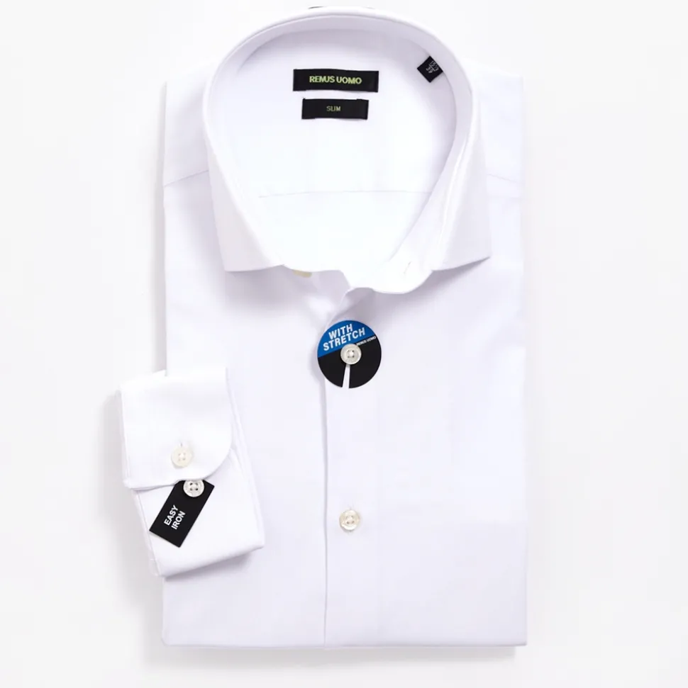 Elevate your wardrobe with the Remus Uomo Stretch Shirt, a modern essential tailored for the contemporary gentleman. Crafted with a slim fit for cotton stretch fabric, this shirt offers both style and comfort, ensuring a sleek and flexible wear throughout the day. The spread collar adds a sophisticated touch, perfect for both formal and casual settings. Finished with button cuffs, this shirt exudes versatility and refinement, making it the perfect addition to any formal wardrobe.