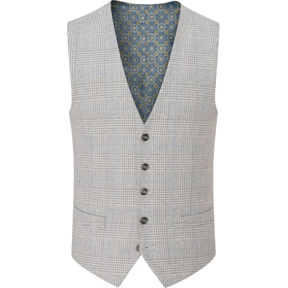 The Skopes Clayton waistcoat in ecru/blue is the perfect addition to your Autumn/Winter wardrobe. Cut in an elegant tailored fit and detailed with a single breasted five button fastening, this waistcoat will keep you stylish as the warmer cooler months roll in. Wear casually with a light chino, a classic open collar shirt and a smart-casual trainer or add some colour to your favourite navy suit by layering with a shirt, tie and finishing with a timeless loafer.